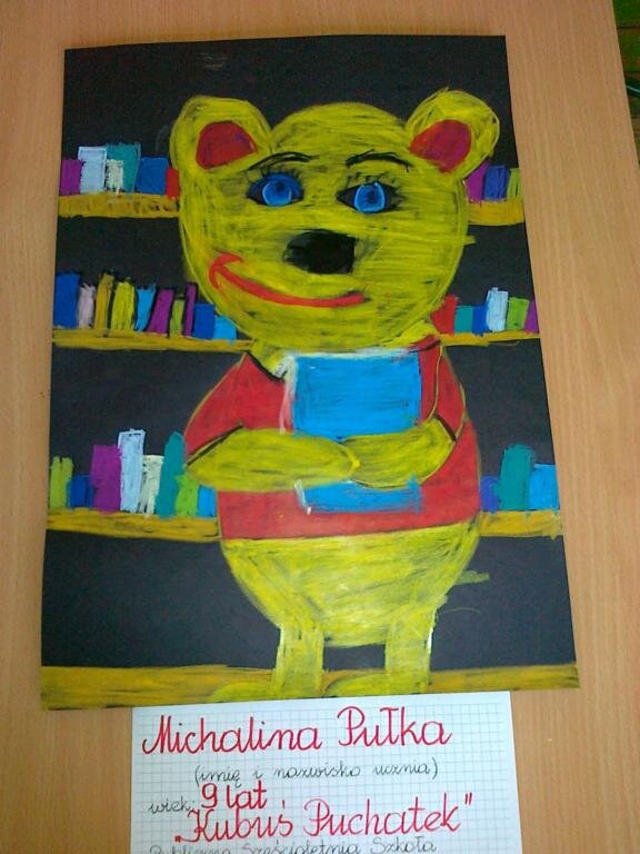 Uczestnicy Kółka plastycznego kl.I-III "Akwarelki" wzięli udział w Powiatowym konkursie plastycznym  "Niespodzianka między regałami, czyli kogo chciałbym/chciałabym spotkać w bibliotece". Małgosia Ryll zajęła III miejsce w tym konkursie na 500 prac. Gratulacje!!!
