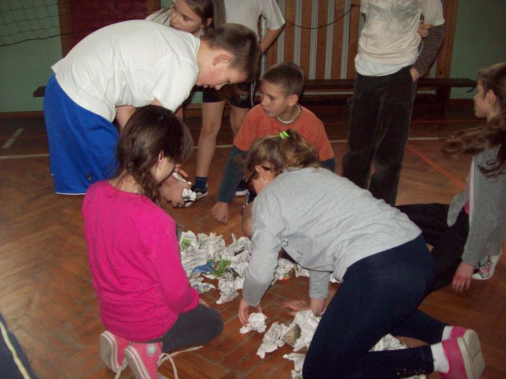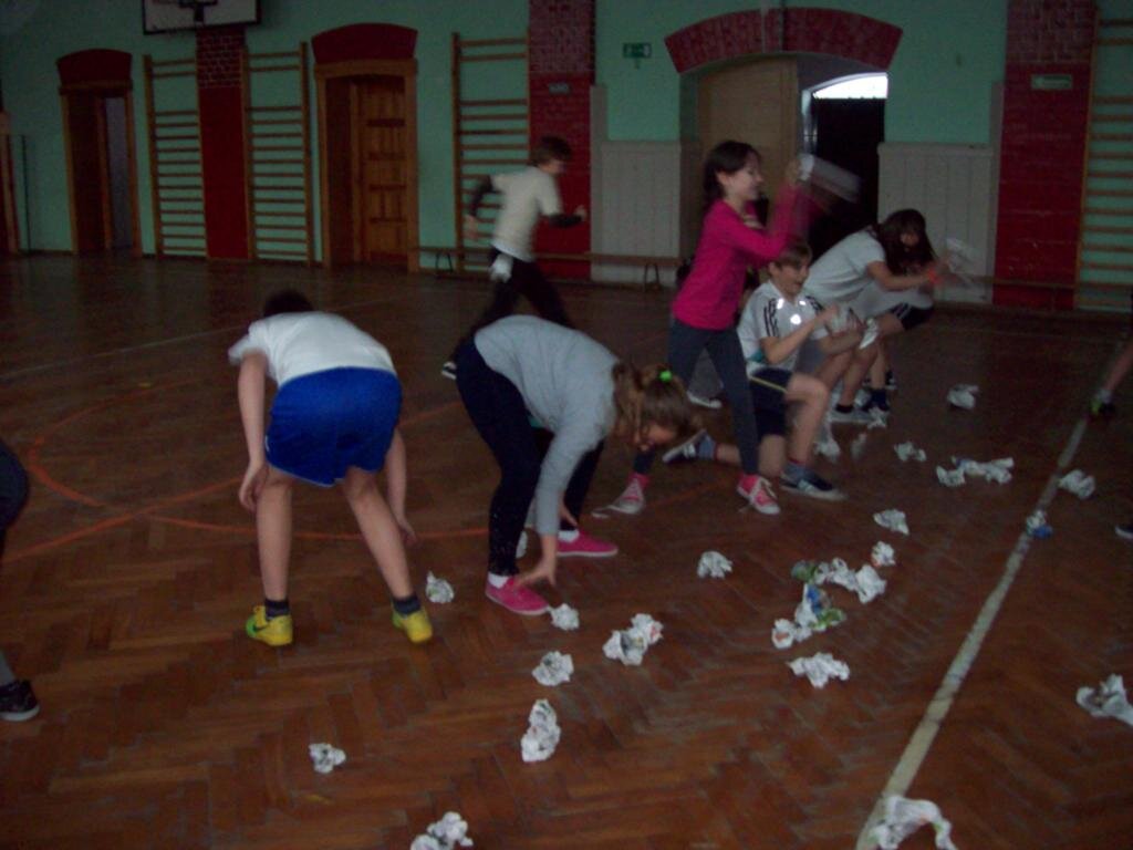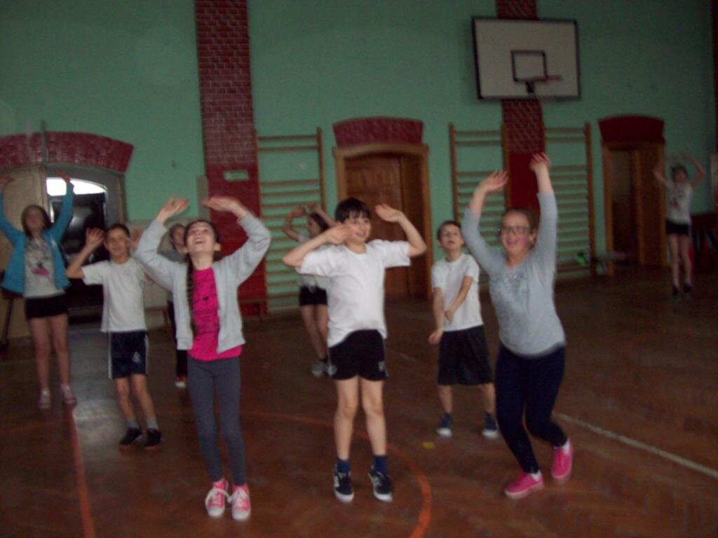 Spróbowaliśmy zarządzać naszą energią udając, że biegamy radośnie po łące, podbijamy piłkę, idziemy bardzo wolno z ciężkim plecakiem i bawiąc się w „pajacyki”. Pompowaliśmy dłońmi, przeciągaliśmy się jak lwy głośno rycząc, wirowaliśmy barkami. Bawiliśmy się w „grzanki” i „pralkę automatyczną”. Dzięki temu poznaliśmy główną zasadę „ładowania energii”, którą jest ENERGICZNY, SZYBKI RUCH.