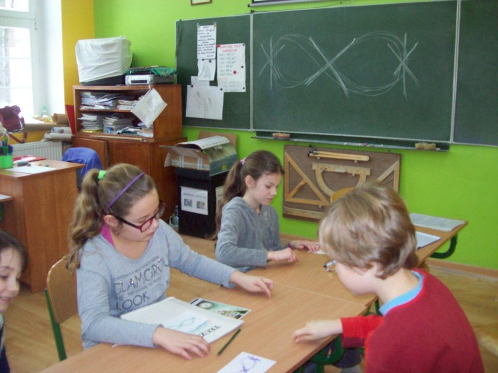 - leżąca ósemka na papierze, w powietrzu, na stole