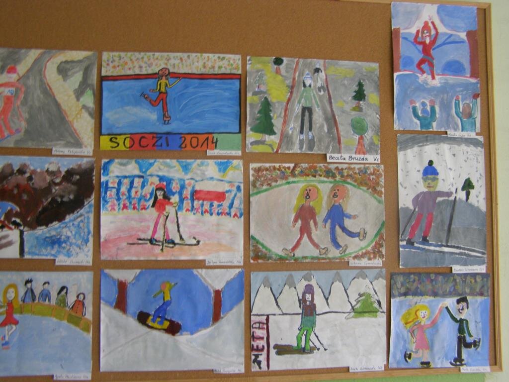 Prace wykonali uczniowie klas IV-VI. Piękne sylwetki sportowców uchwycone w ruchu to zadanie dość trudne, ale wykonane na piątki z plusem