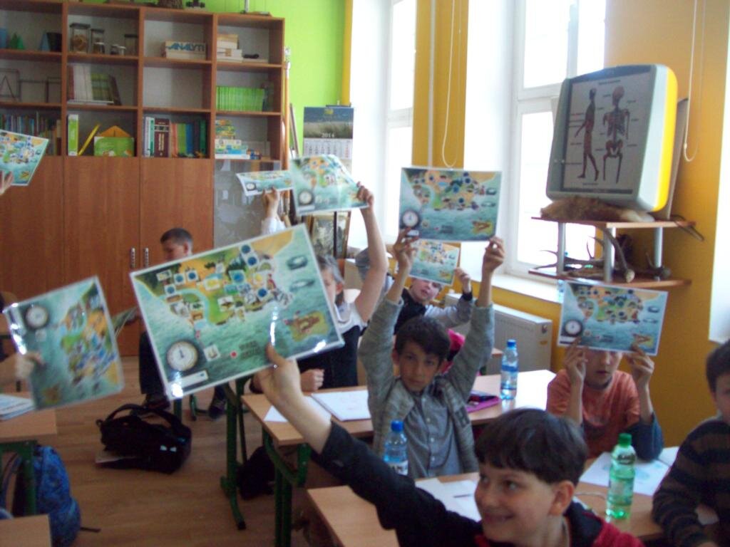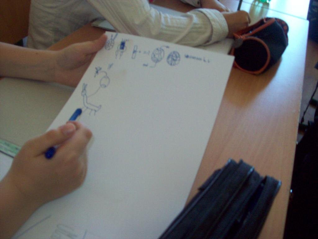 Zajęcia zapoczątkowała mini-drama, w której trzeba było odgrywać roślinę, która zostaje pozbawiona wody. Tak jak ona, my również czujemy się lepiej, kiedy działamy w otoczeniu, które lubimy. Poszukiwaliśmy też odpowiedzi na pytanie „W jaki sposób uczy nam się najlepiej?” Dowiedzieliśmy się jak pracują słuchowcy, jak wzrokowcy i jak kinestetycy. Zrobiliśmy z tego notatki wykorzystując skróty, symbole – powstały nasze własne mapy myśli. Próbowaliśmy znaleźć nasze własne style uczenia. Następnie trzeba było zanotować informacje o naszej planecie – pomysły były przeróżne.