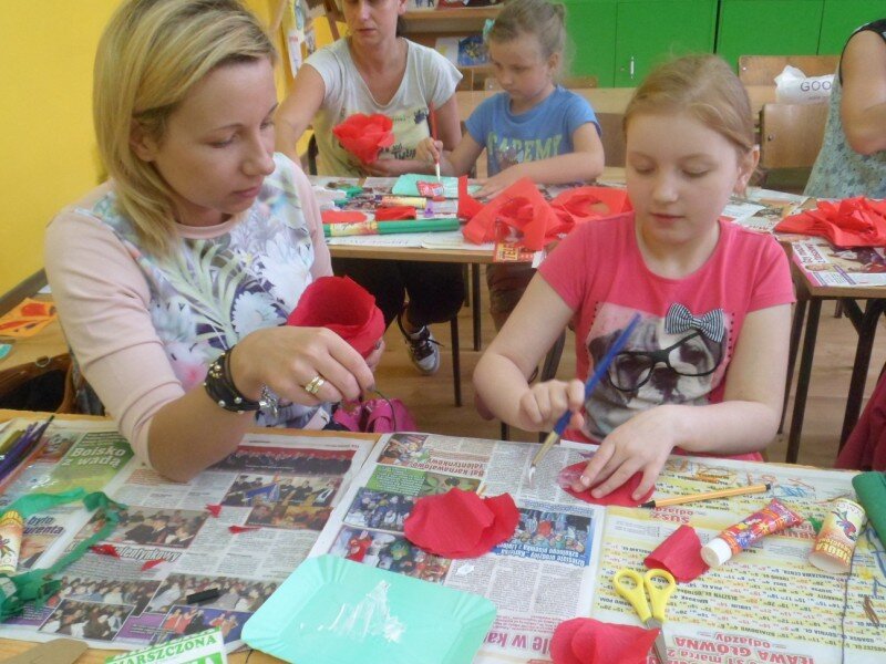 Dzień Matki uczciliśmy wspólnym wykonaniem róży z bibuły. Ten trudny kunszt wymagał pomocy rąk naszych kochanych mam. Wspólnymi siłami powstały piękne prace, a razem spędzony czas okazał się bezcenny dla pogłębienia relacji rodzinnych.