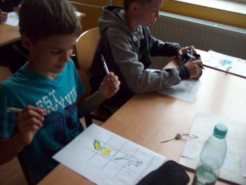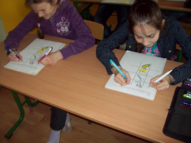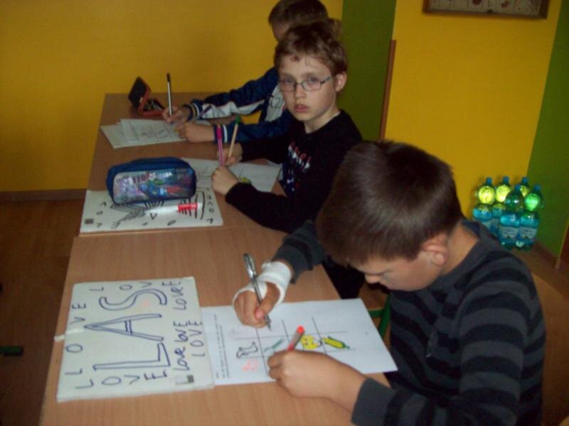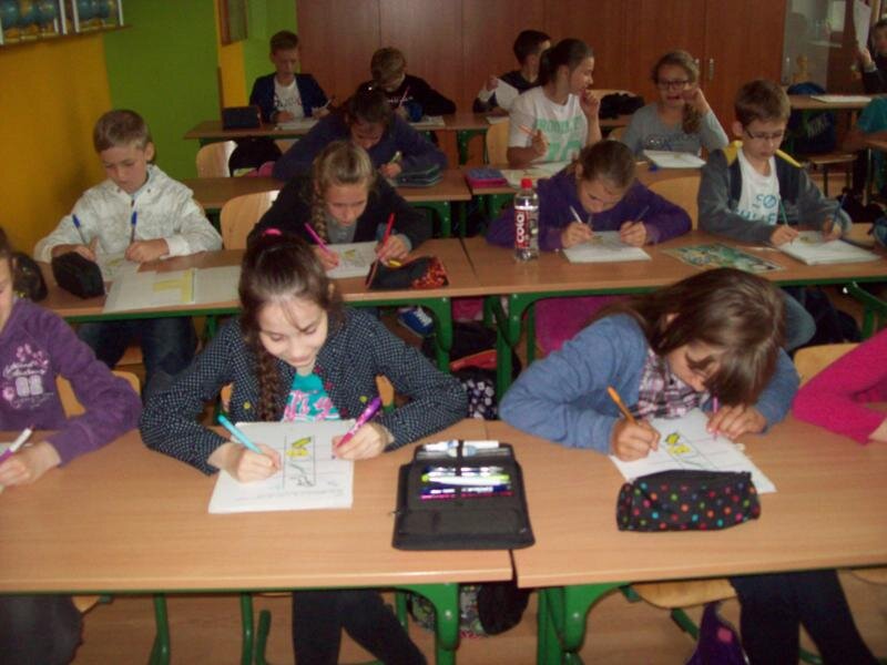 Zaczęliśmy od rozgrzewki, która polegała na rysowaniu oburącz, a następnie uczestniczyliśmy w Smoczym Quizie odpowiadając na przeróżne pytania. W nagrodę za prawidłowe odpowiedzi otrzymaliśmy wizerunki smoka, które zostaną umieszczone na naszych herbach.