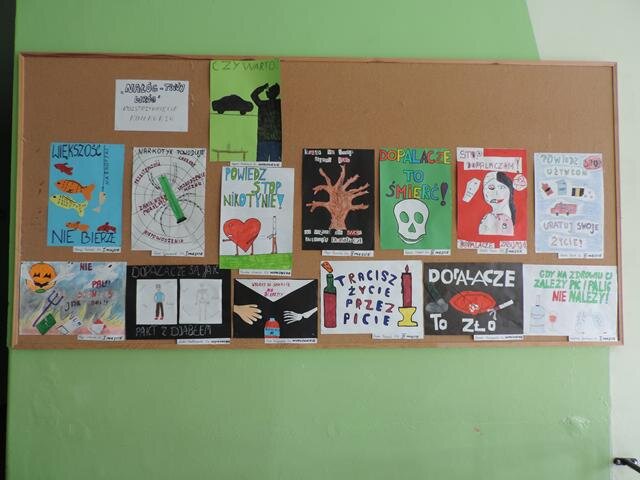 W dowolnie wybranych technikach uczniowie wykonali plakaty przeciwdziałające nałogom.