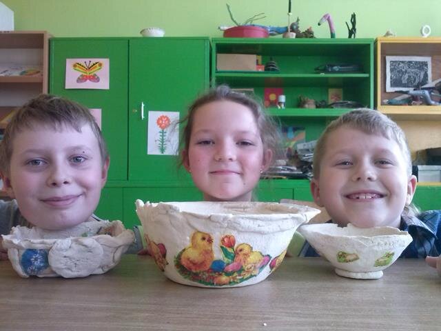 Na ostatnich przed świętami zajęciach Koła Plastycznego uczniowie wykonali miseczki z masy solnej. W technice decoupageu ozdobili swoje dzieła. Wszyscy uczestnicy zajęć składają serdeczne Życzenia Świąteczne.