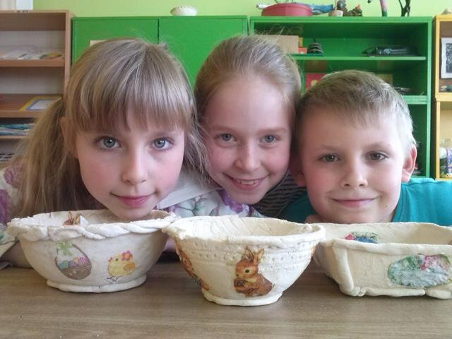 Na ostatnich przed świętami zajęciach Koła Plastycznego uczniowie wykonali miseczki z masy solnej. W technice decoupageu ozdobili swoje dzieła. Wszyscy uczestnicy zajęć składają serdeczne Życzenia Świąteczne.