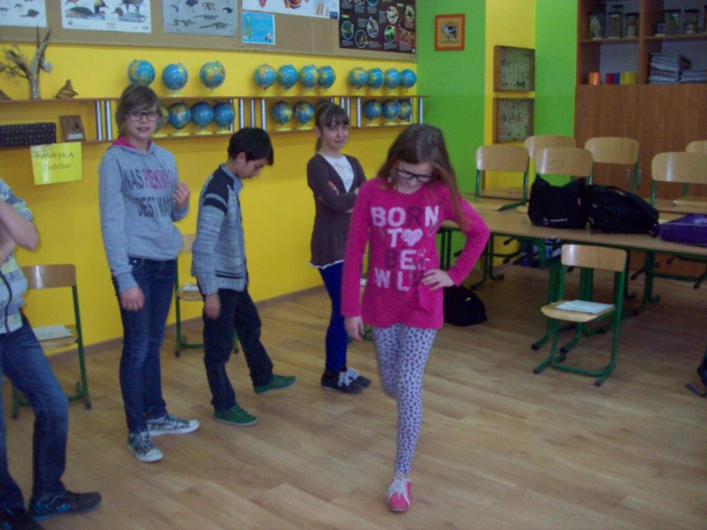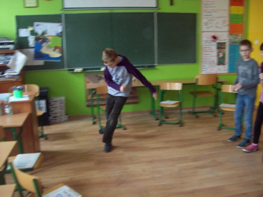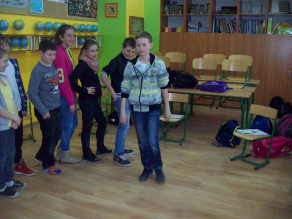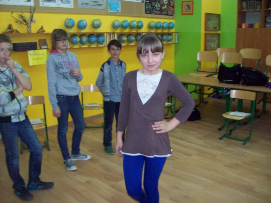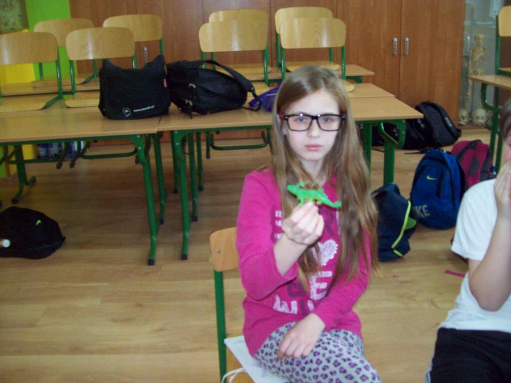 Celem zajęć było szukanie czegoś dziwnego w telewizorze, samolocie i telefonie komórkowym oraz czegoś ciekawego w „strasznych jaszczurkach” jakimi były dinozaury. Następnie na podstawie obrazu Breugla „Zabawy dziecięce” trzeba było odnaleźć jak najwięcej tematów zabaw w okresie średniowiecza. Podsumowaniem zajęć była zabawa kreatywna polegająca na ustawieniu różnych wynalazków na osi czasu.
