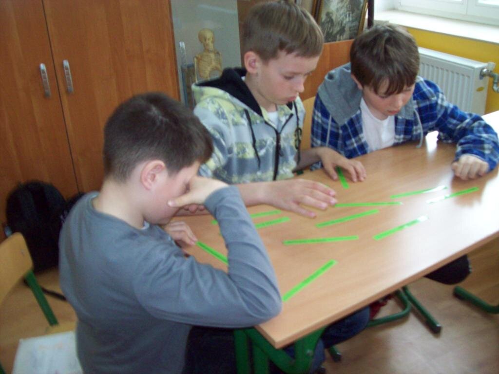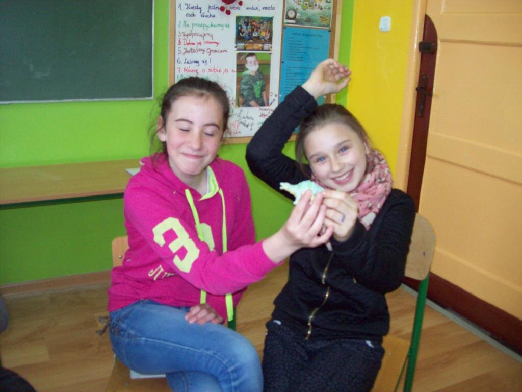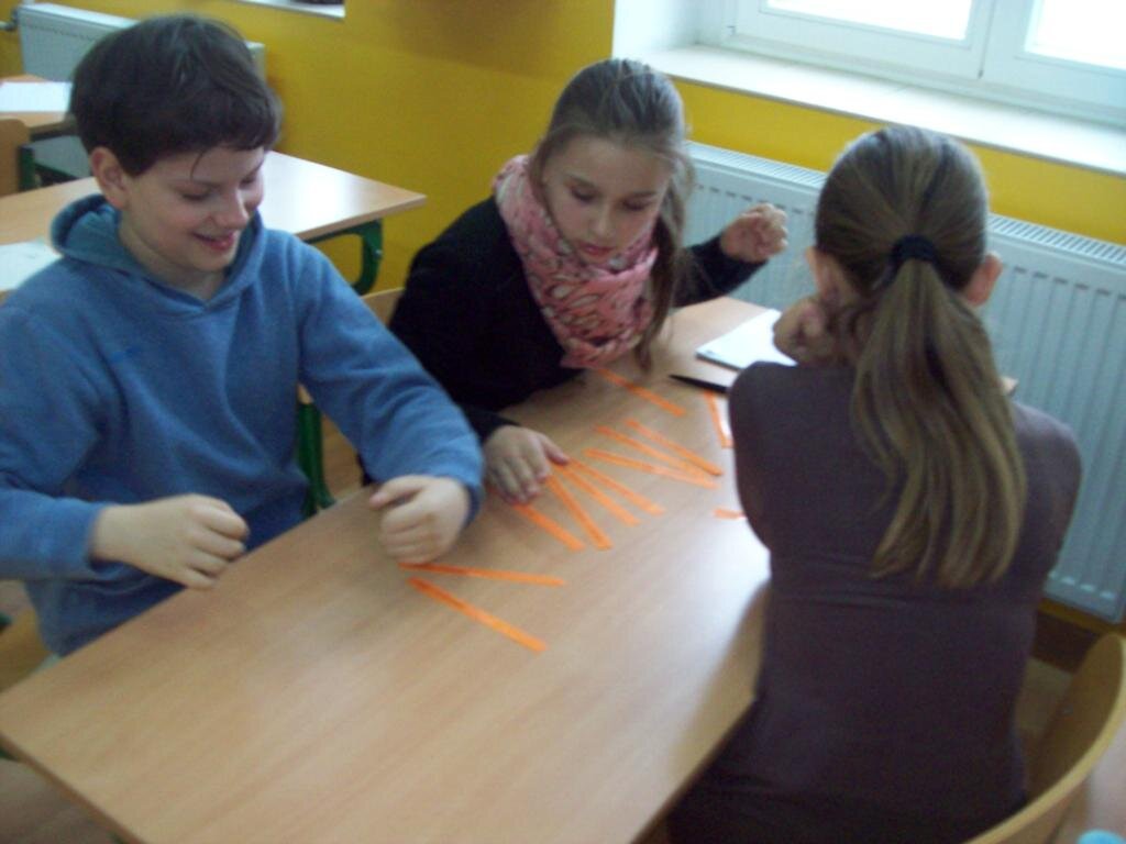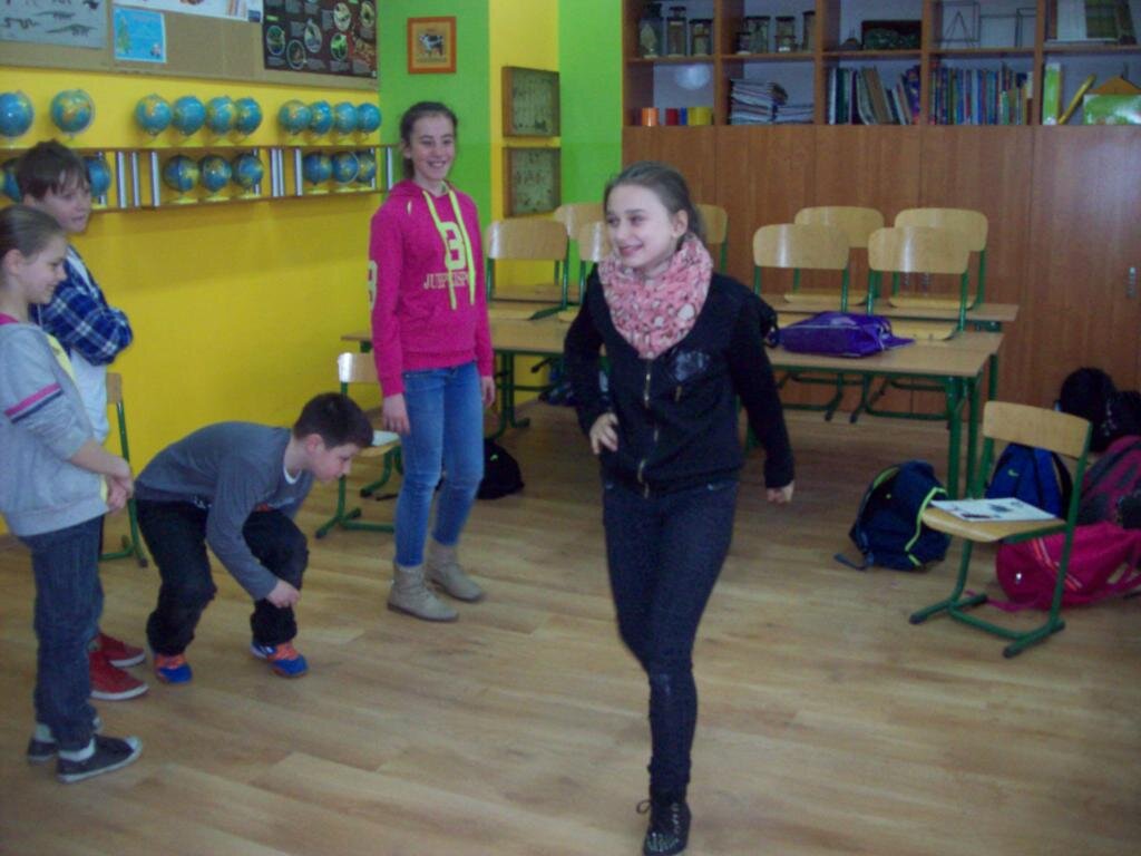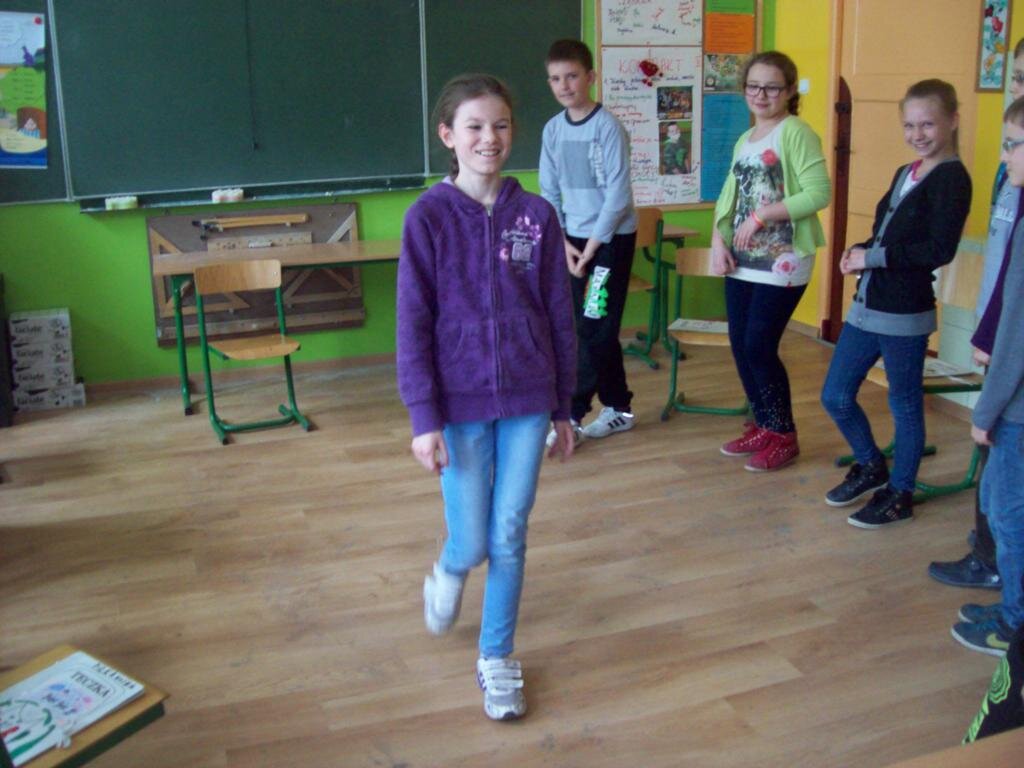 Celem zajęć było szukanie czegoś dziwnego w telewizorze, samolocie i telefonie komórkowym oraz czegoś ciekawego w „strasznych jaszczurkach” jakimi były dinozaury. Następnie na podstawie obrazu Breugla „Zabawy dziecięce” trzeba było odnaleźć jak najwięcej tematów zabaw w okresie średniowiecza. Podsumowaniem zajęć była zabawa kreatywna polegająca na ustawieniu różnych wynalazków na osi czasu.
