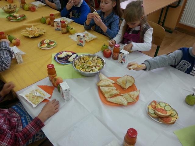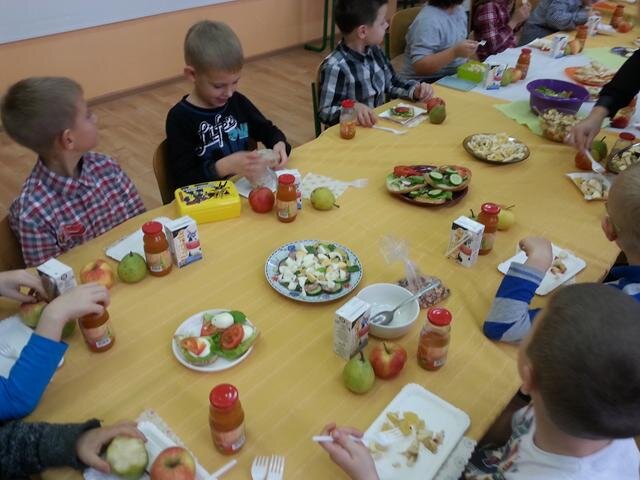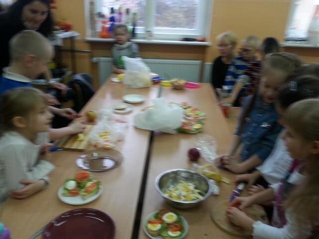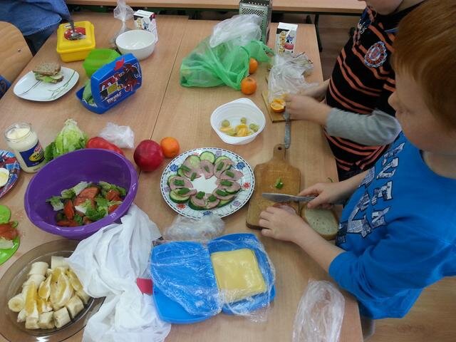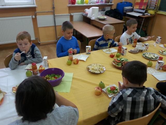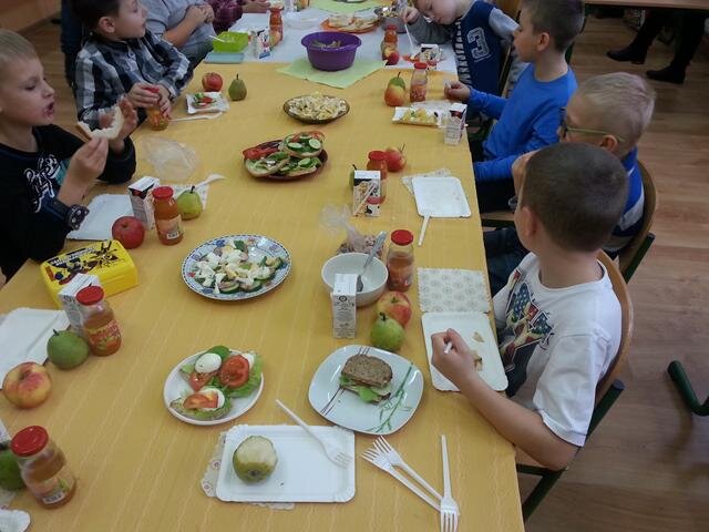 Nam w przygotowaniu śniadania pomagali rodzice. Kolorowe kanapki i surówki były pyszne!