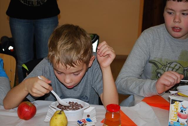 9 XI 2015r. uczniowie kl. III b (wych. D. Ciuruś) wzięli aktywny udział w ogólnopolskiej akcji ,,Śniadanie daje moc’’. W akcję zaangażowali się rodzice uczniów. Uczniowie zjedli pyszne, kolorowe śniadanie. Podczas rozmów dzieci udowodniły, iż śniadanie to najważniejszy posiłek dnia i dzięki niemu mają energię do nauki i zabawy.