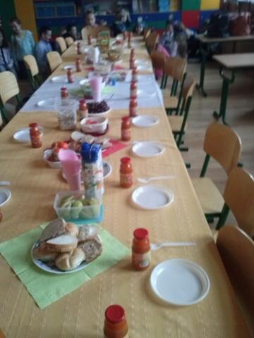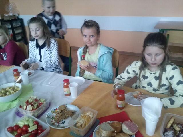 W dniu 6 XI 2015 r. uczniowie klasy III d (wych. M. Wiktorowicz) już po raz trzeci wzięli udział w ogólnopolskiej akcji pod hasłem: „Śniadanie daje moc”. Każde dziecko w domu wraz z rodzicami przygotowało zdrowy i smaczny posiłek, który przynieśli do klasy. Zaangażowani rodzice wspólnie z dziećmi udekorowali stół. Kolorowo nakryty stół towarzystwo koleżanek i kolegów sprawiły, że każdemu dopisywał apetyt. Podczas rozmów przy stole, dzieci udowodniły, że doskonale wiedzą, iż śniadanie to najważniejszy posiłek dnia i dzięki niemu mają energię do nauki, zabawy, lepiej koncentrują się podczas lekcji.