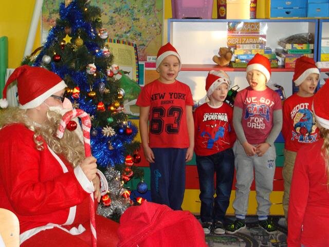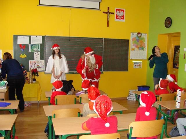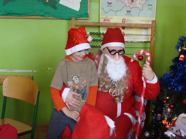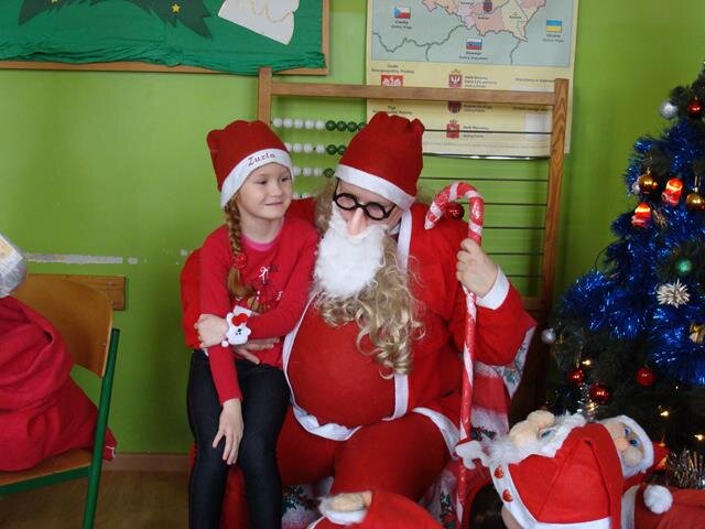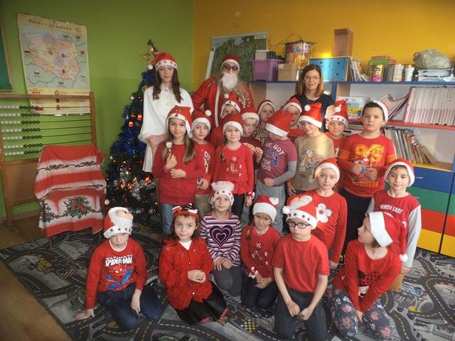i zwinna. Wiele razy ukończyła daną konkurencję jako pierwsza. Wszystkie dzieci bawiły się na wesołe, te kibicujące i dopingujące również. Następnie udaliśmy się wszyscy do klasy. Dzieci już nie mogły się doczekać oczekiwanego gościa – Mikołaja. Zaśpiewały Mikołajowi piosenkę, powiedziały wiersze, a nawet coś miłego. Wszystkie dzieci otrzymały paczkę od Mikołaja i były bardzo szczęśliwe, co widać na załączonych zdjęciach.
