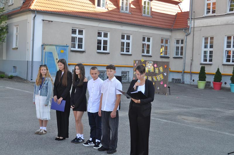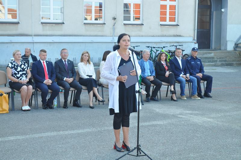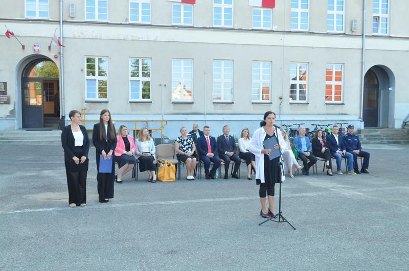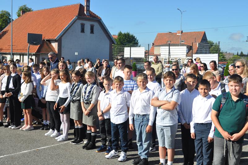 1 września2025 roku punktualnie o godzinie 9.00 na boisku szkolnym SP Susz rozpoczęliśmy nowy rok szkolny. Uczniowie, zaproszeni goście, grono pedagogiczne oraz rodzice uczniów zaśpiewali „Mazurka Dąbrowskiego”, pani dyrektor Wioletta Ryszka w szczególny sposób zwróciła się do uczniów klas pierwszych, rozpoczynających swoją przygodę w naszej szkole, życząc im sukcesów, radości i wspaniałych przyjaźni.