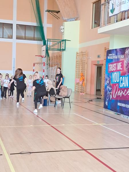 Dzisiaj w naszej szkole gościliśmy tancerki ze szkoły tańca Wasilewski- Felska. Uczniowie klas 1-3 uczestniczyli w zajęciach tanecznych, co spotkało się z dużą aprobatą, radością i aktywnym uczestnictwem. W ten sposób dzieci miały okazję zobaczyć namiastkę tego, co oferuje taka szkoła tańca.
