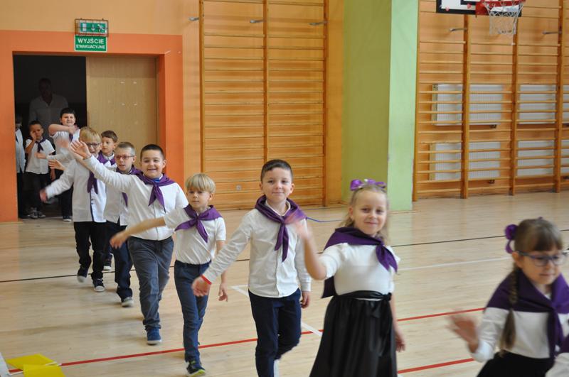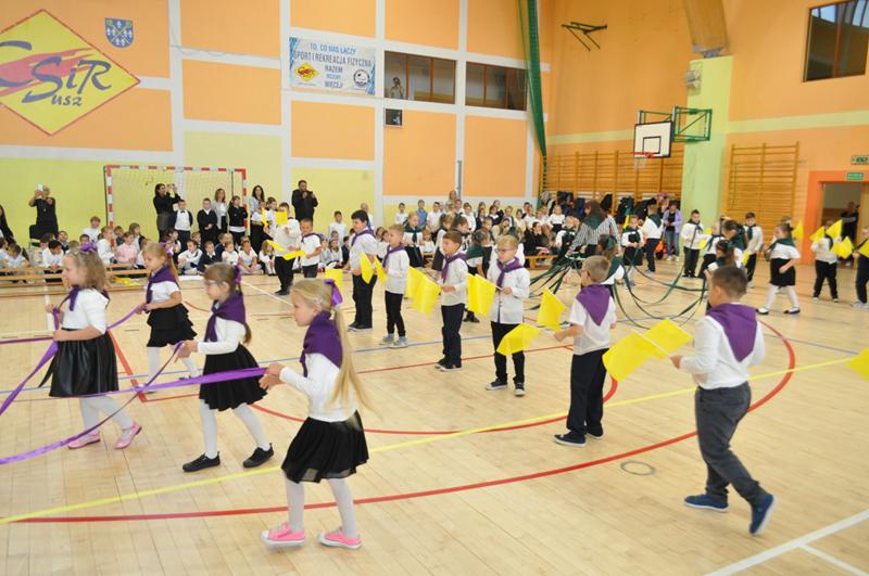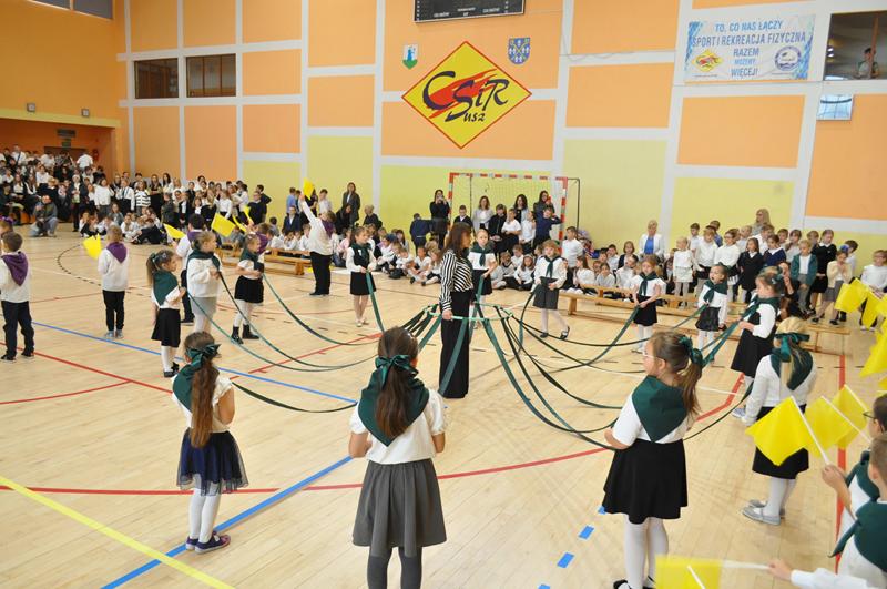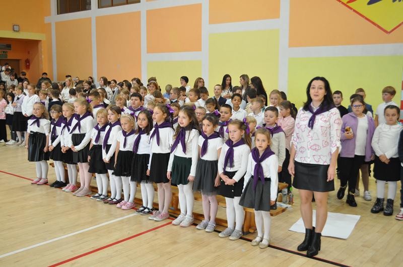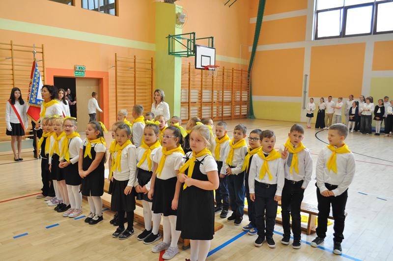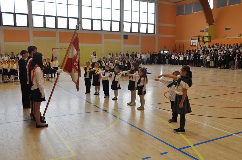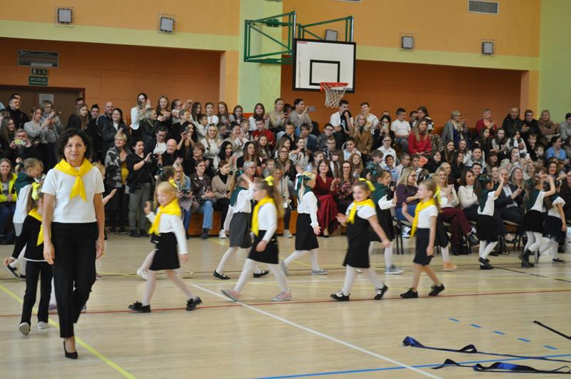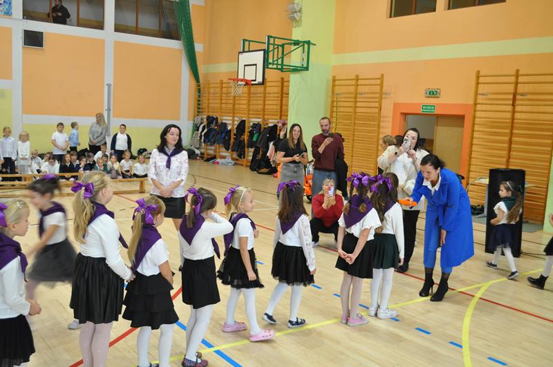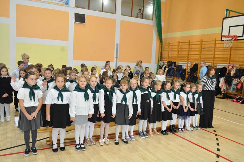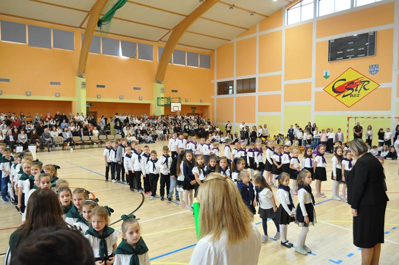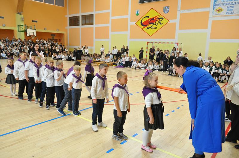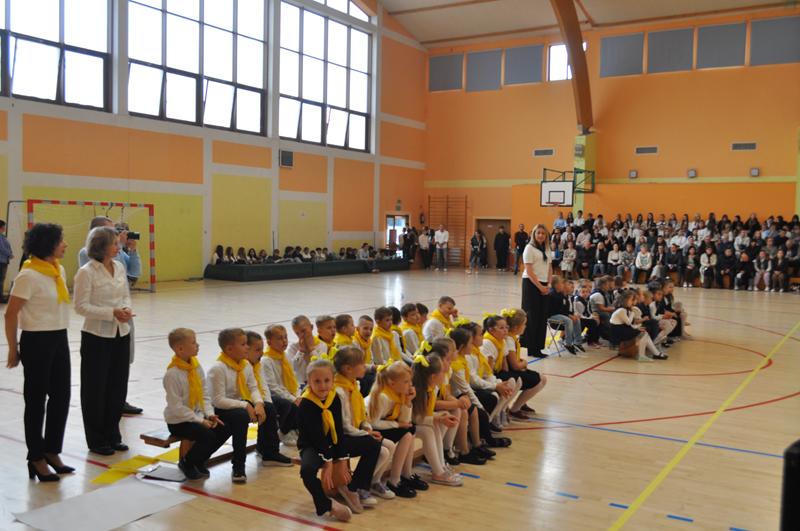 Na początku głos zabrała pani dyrektor Wioletta Ryszka, która przywitała zaproszonych gości, rodziców, dziadków i krewnych pierwszoklasistów oraz grono pedagogiczne, pracowników administracji i obsługi i społeczność uczniowską. Z jej ust popłynęły życzenia i podziękowania. Pani dyrektor wspomniała również o pięknym jubileuszu szkoły, jakim jest jej 80 lecie. Przedstawiła krótko genezę budowania wizerunku szkoły przez nauczycieli i pracowników oświaty w ciągu tych lat. Następnie nastał długo i z niecierpliwością oczekiwany moment ślubowania uczniów klas pierwszych.