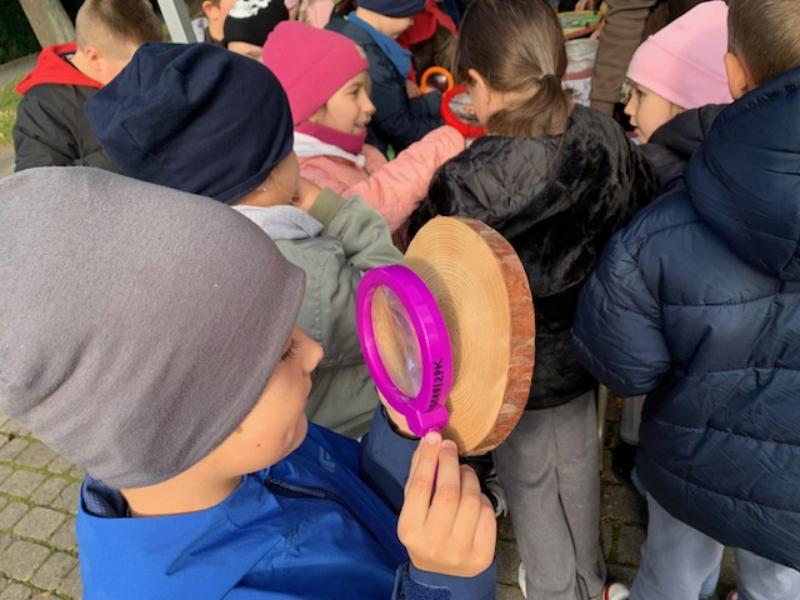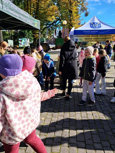 Uczniowie naszej szkoły nie pozostali obojętni na tak pouczającą lekcję. Poszliśmy do miejsca akcji. Tam dzieci wzięły udział w pogadankach na temat drzew, grzybów oraz pszczół. Miały okazję sprawdzić swoją wiedzę w quizach przyrodniczych. Na koniec otrzymaliśmy krzewy, które posadzimy na terenie szkoły.