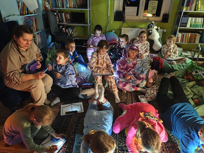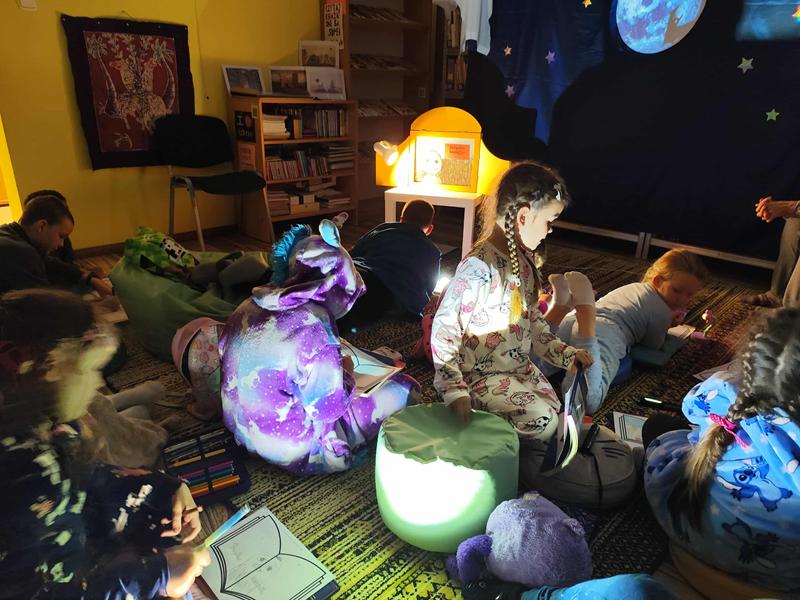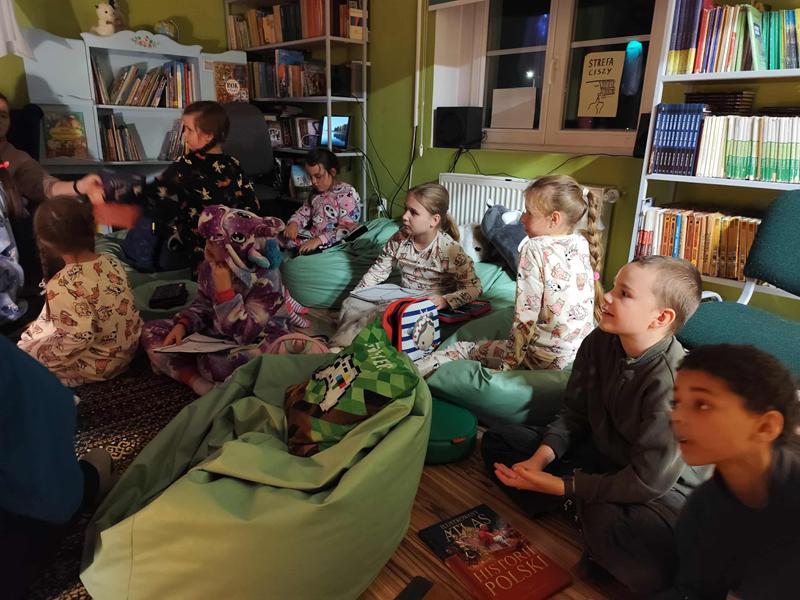W akcji wzięło udział 27 uczniów w dwóch grupach wiekowych. Uczniowie klas I-III w godzinach od 18:00 do 19:00, a klasy IV-VII w godz. od 19:00 do 20:00. Na spotkaniach został zaprezentowany teatrzyk Kamishibai z opowieściami pt. „Brzydkie Kaczątko” oraz „Pnącza zmartwień”. Ponadto uczniowie wykonywali karty pracy, czytali fragmenty swoich ulubionych książek oraz brali udział w zabawach aktywujących procesy czytelnicze. Aby oddać nastrój nocy na tę okazję zostały przygotowane specjalne dekoracje, a uczestnicy spotkania ubrali się w piżamy i przynieśli ze sobą swoje ulubione przytulanki. Było mnóstwo emocji i dobrej zabawy. Kolejne takie spotkanie dopiero za rok.