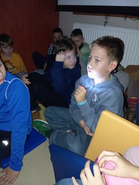 Przygotowane dekoracje, podkład muzyczny oddały nastrój słuchanej opowieści. Po wysłuchaniu zadaniem dzieci było samodzielne ułożenie dalszego ciągu wydarzeń. Dzieci z zapałem wypowiadały się co mogło wydarzyć się w dalszej części wysłuchanej opowiastki. Było mnóstwo zabawy, uśmiechu, emocji.