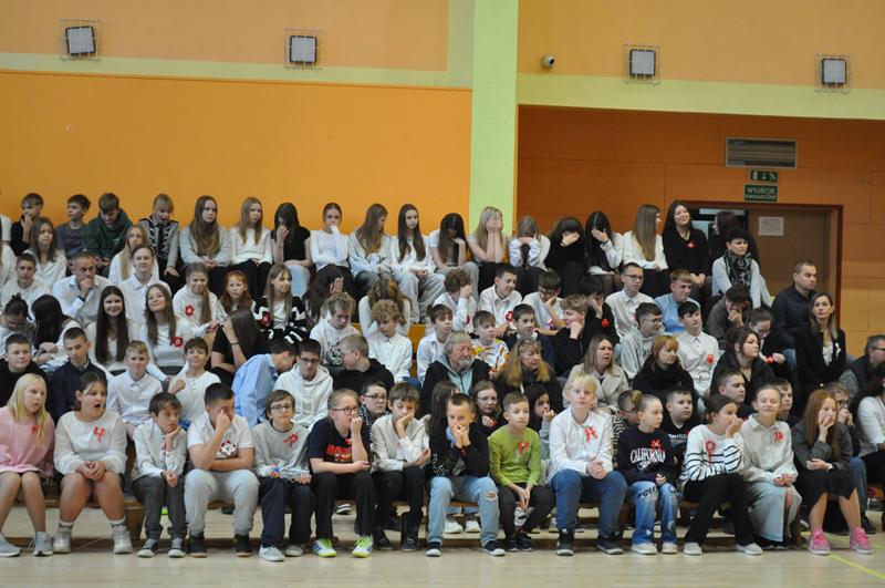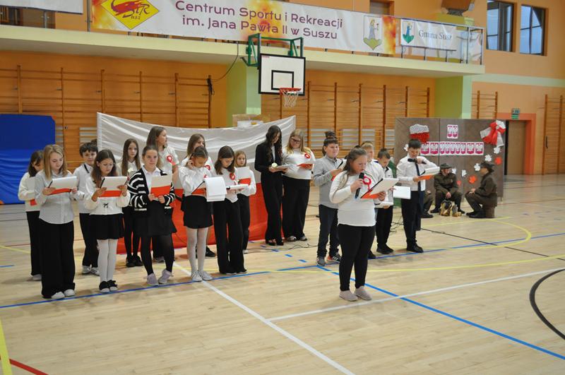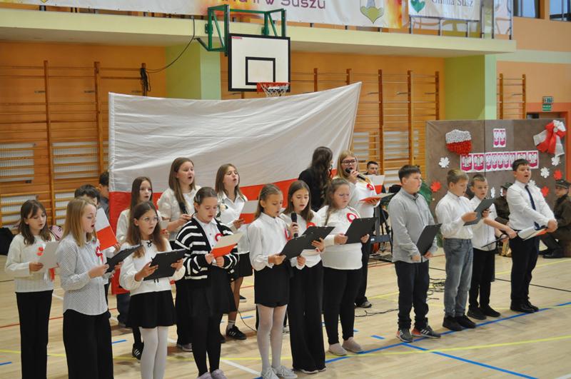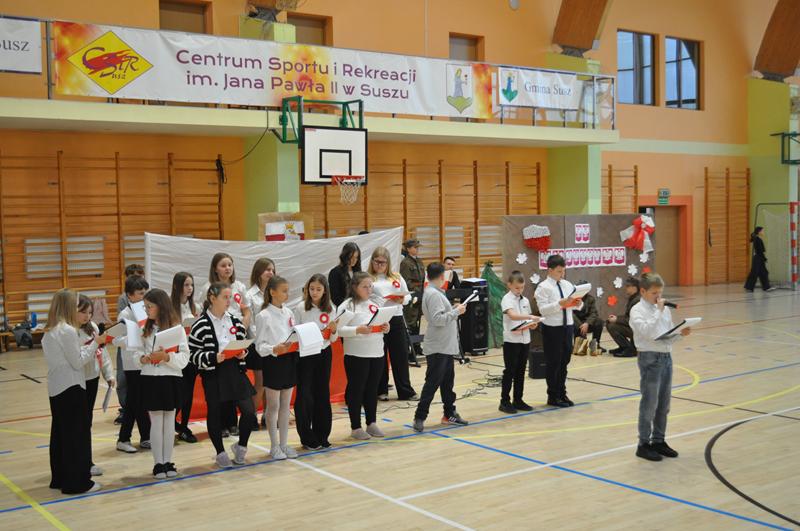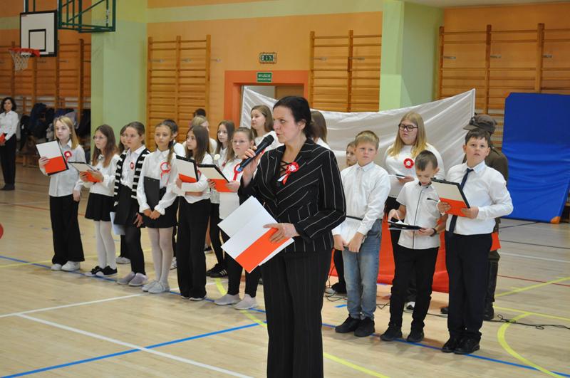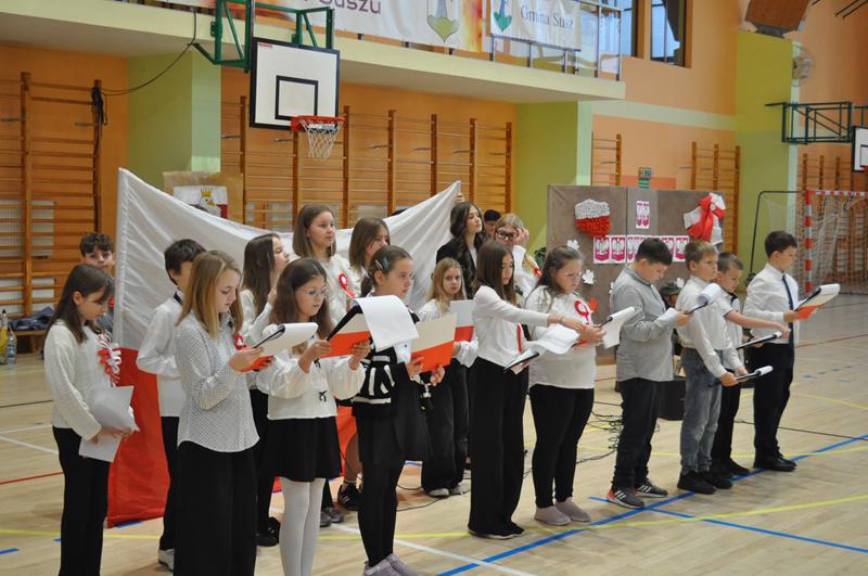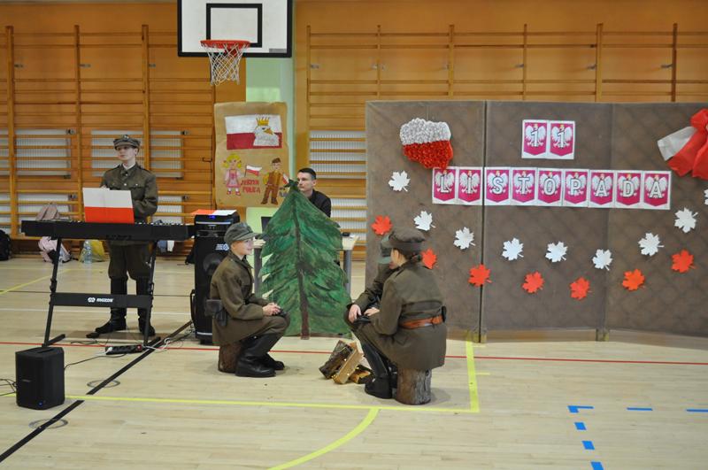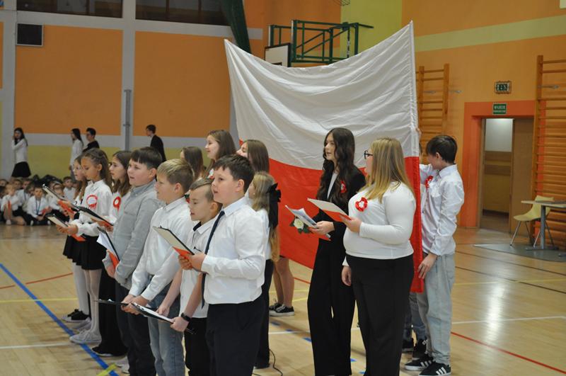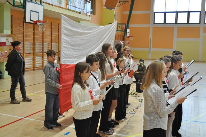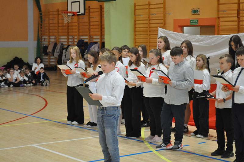Uczniowie zaprezentowali krótki montaż słowno-muzyczny ukazujący drogę Polski do odzyskania niepodległości w 1918 roku. Występ wzbogaciły piosenki patriotyczne, tworząc podniosłą atmosferę i przypominając o bohaterach walczących o wolność ojczyzny.