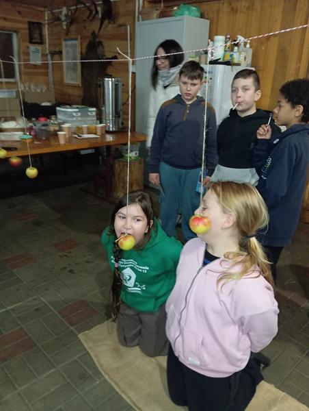 Kolejnym atrakcją spotkania było wykonanie pracy plastycznej jeża lub grzyba za pomocą różnych materiałów. Kolejną atrakcją była ścieżka sensoryczna. Dzieci wchodząc na kolanach po workach wypełnionych różnymi nasionami odgadywały co znajduje się w workach. Przeprowadzono konkurs kto pierwszy ugryzie jabłko zawieszone na nitce, który wzbudził wśród dzieci wielkie emocje.