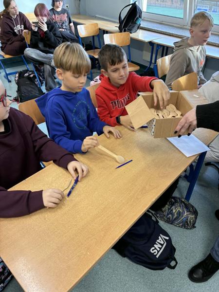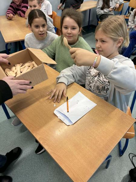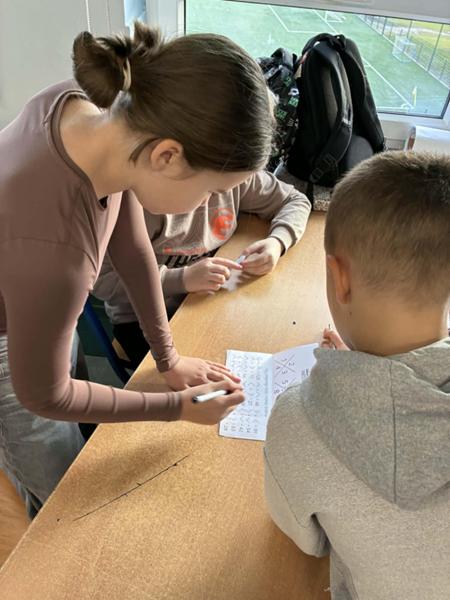 Podczas przerwy na uczniów czekały mini-zabawy matematyczne, za których poprawne rozwiązania można było zdobyć drobny upominek lub słodki poczęstunek. Szczególną atrakcją były także działania poza salami lekcyjnymi. Uczennice z klasy 7a, jako ekspertki tabliczki mnożenia, sprawdzały znajomość mnożenia wśród dorosłych pracowników szkoły- nauczycieli, pracowników administracji i obsługi. Z kolei uczniowie z klasy 6a ruszyli w teren, aby przeprowadzić akcję tabliczkowego wyzwania wśród mieszkańców miasta.