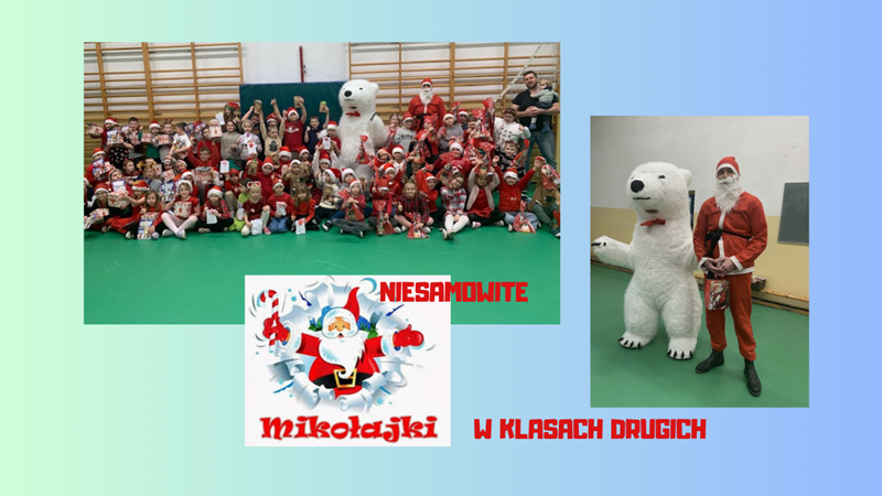 6 grudnia w naszej szkoły odbyły się radosne obchody Mikołajek. Uczniowie klas drugich uczestniczyli w wyjątkowym spotkaniu z Mikołajem, który przybył w towarzystwie uśmiechniętego Misia oraz pomocnego Elfa. Wszyscy byli pięknie przebrani, co dodało wydarzeniu jeszcze bardziej świątecznego charakteru.