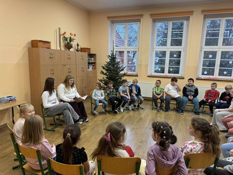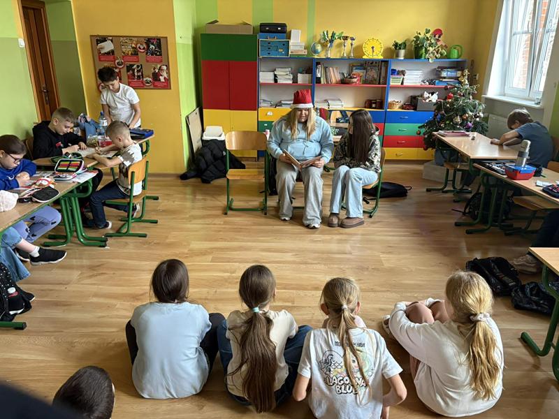 W tym tygodniu uczniowie z Samorządu Uczniowskiego odwiedzili klasy 1–3, aby wprowadzić najmłodszych w świąteczny nastrój. Podczas krótkich spotkań czytali dzieciom świąteczne opowiadania, pełne magii, ciepła i radosnych przygotowań do Bożego Narodzenia.