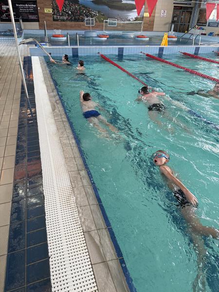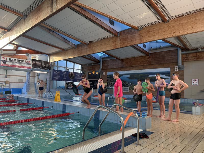 Wyjazdowe lekcje pływania są dla klasy 6c okazją do rozwijania sprawności fizycznej, budowania pewności siebie w wodzie oraz integracji grupy. Uczniowie chętnie biorą w nich udział i z każdą kolejną wizytą poprawiają swoje umiejętności.