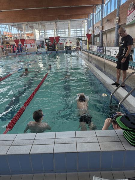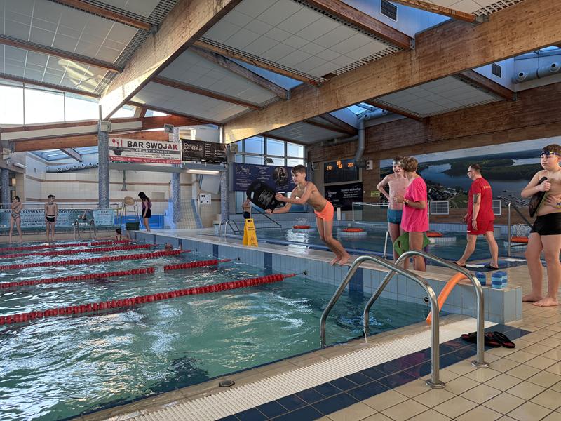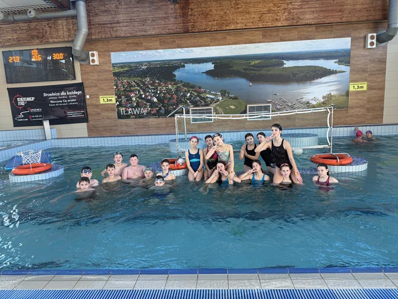Klasa 6c regularnie uczestniczy w lekcjach doskonalenia pływania, które odbywają się na basenie w Iławie. Uczniowie pod okiem instruktorów wykonują ćwiczenia dostosowane do swojego poziomu umiejętności.