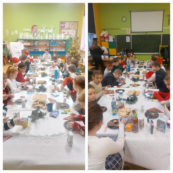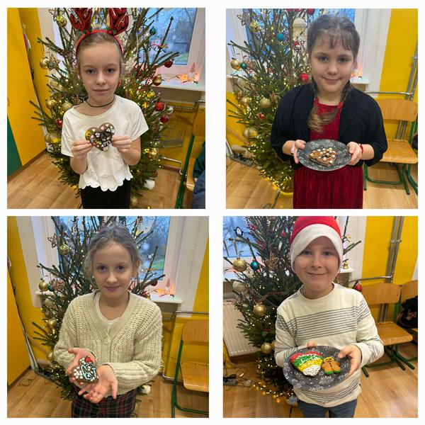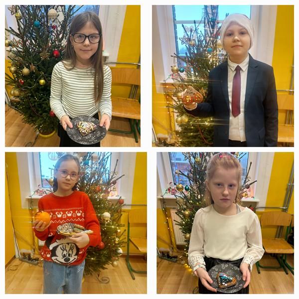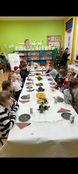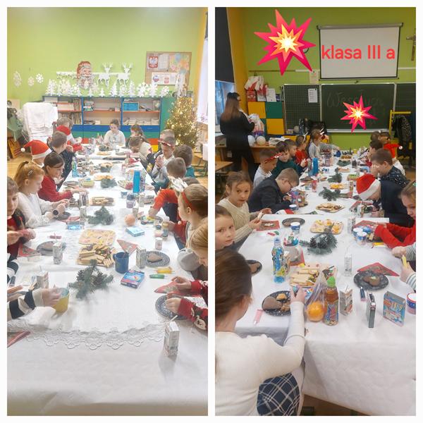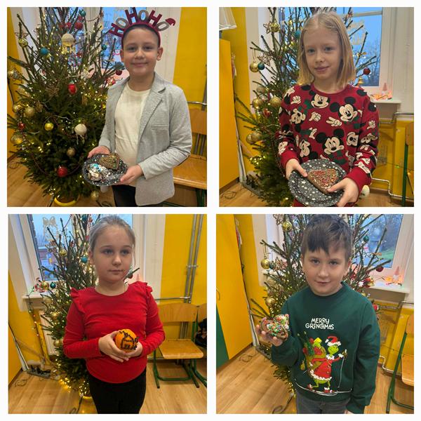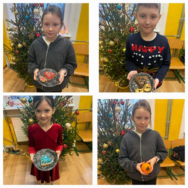 Uczniowie klasy 3a wychowawca Barbara Bedra-Bańkowska, obchodzili wigilię klasową – wyjątkowe spotkanie wigilijne pełne radości i świątecznej atmosfery. Dzieci dzieliły się opłatkiem, składały sobie serdeczne życzenia oraz wspólnie śpiewały kolędy. Nie zabrakło także działań plastycznych i kulinarnych – uczniowie ozdabiali pierniki oraz pomarańcze, wykazując się dużą kreatywnością.