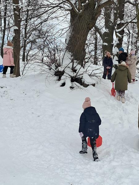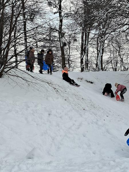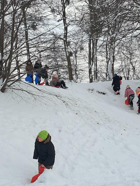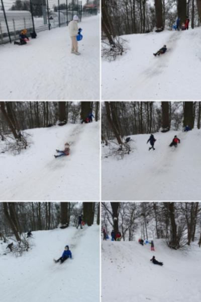 Po sprawdzeniu pod względem bezpieczeństwa terenu i rozgrzewce zaczęła się zabawa. Szusowanie po śniegu przyniosło wiele radości na twarzach drugoklasistów. Można uznać, że jesteśmy przygotowani do zimowego wypoczynku.