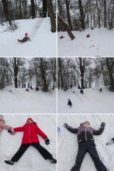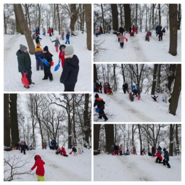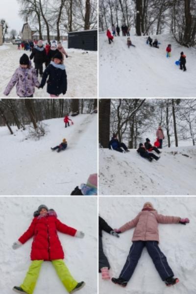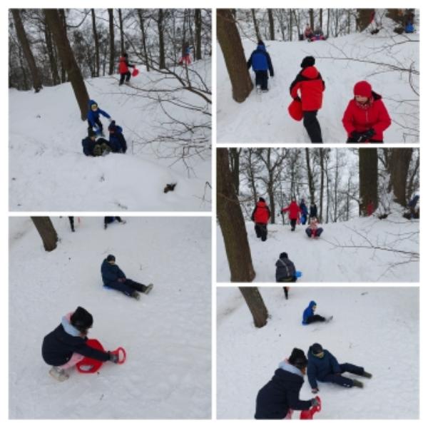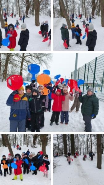 Drugoklasiści planując wypoczynek zimowy obejrzeli prezentację multimedialną na temat bezpiecznego spędzania ferii. Tematyczne zadania i prace plastyczne wzbogaciły propozycje spędzenia wolnego czasu. Rozmowy o zabawach i sportach zimowych zmotywowały nas do działań praktycznych. Zaopatrzeni w szkolne jabłuszka wyruszyliśmy na górki.