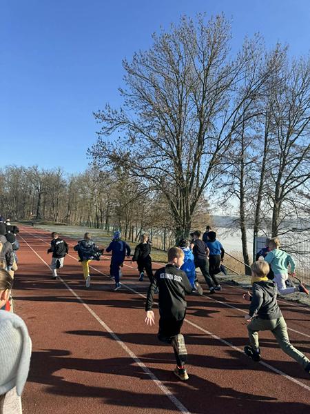 Najmłodsi uczniowie z klas 1–3 rywalizowali na bieżni na Orliku, gdzie mogli sprawdzić swoje siły w biegach i poczuć prawdziwą sportową atmosferę. Starsi uczniowie z klas 4–8 pokonywali trasę na alejce blisko jeziora,wykazując się wytrwałością, zaangażowaniem i sportowym duchem walki.