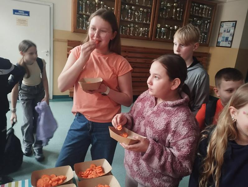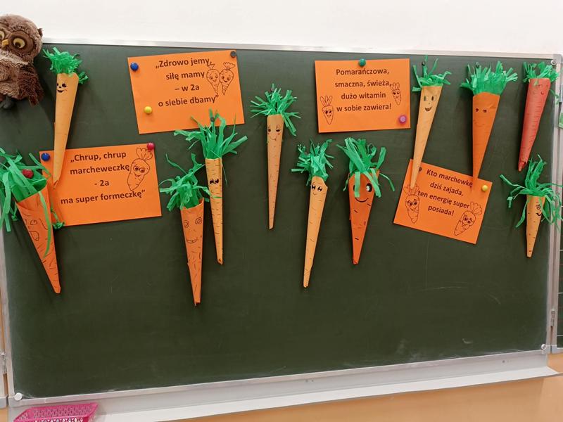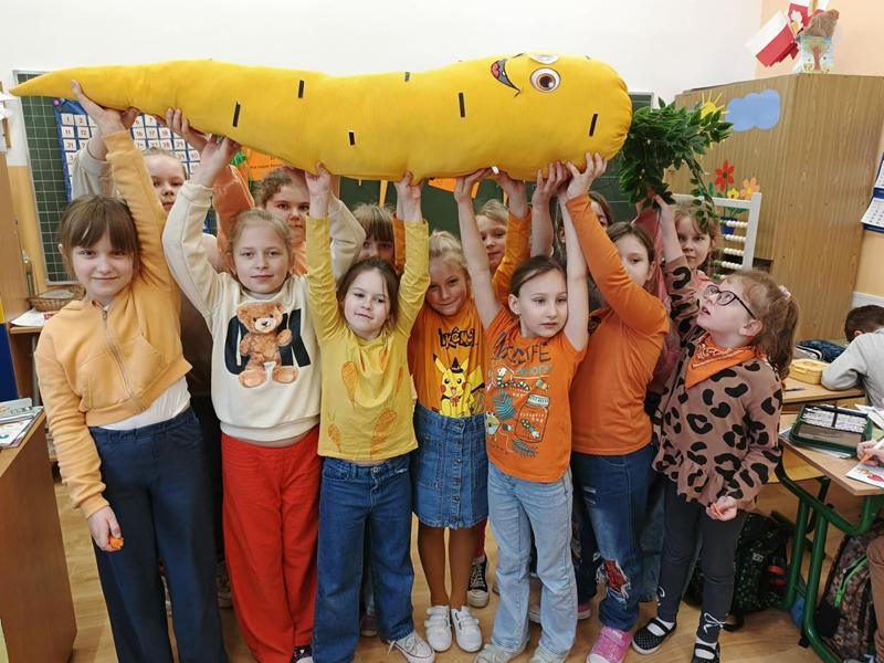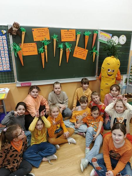 Klasy I-III również włączyły się w świętowanie obchodów Dnia Marchewki, a wychowawcy zorganizowali dzieciom lekcje tematyczne, w czasie których rozmawiali o zdrowym odżywianiu i wykonywali prace plastyczne.