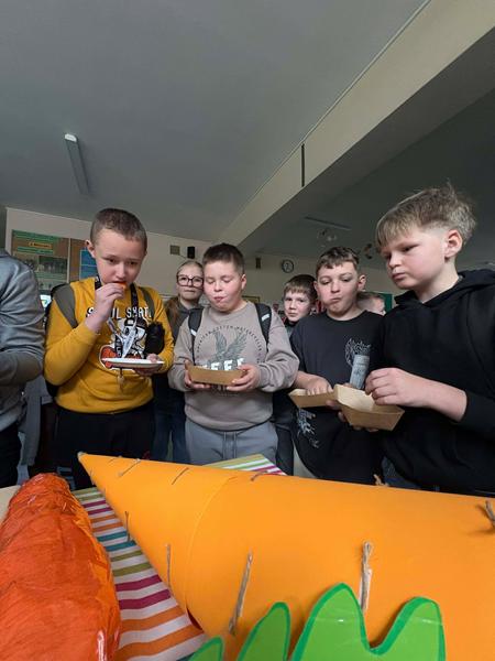 Jednym z głównych punktów programu był konkurs na największą marchewkę – zarówno prawdziwą, jak i wykonaną z różnych materiałów. Choć żadna klasa nie przyniosła prawdziwej marchewki, nie przeszkodziło to w świetnej zabawie! Konkurs rozstrzygnięto w dwóch kategoriach: