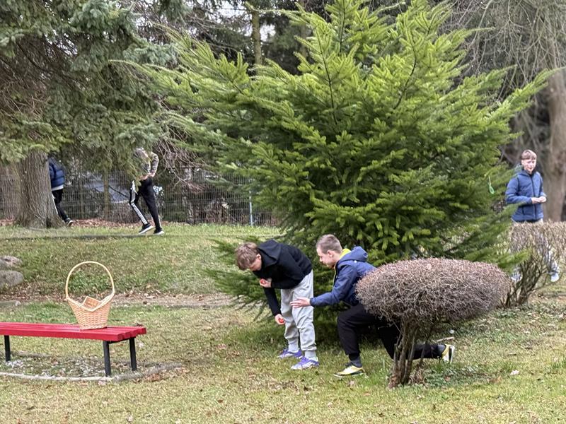 Po części klasowej udaliśmy się w teren wokół szkoły, gdzie odbyła się świąteczna zabawa polegająca na szukaniu czekoladowych jajek - niespodzianek ukrytych przez wychowawcę. Zabawa dostarczyła wszystkim dużo radości i emocji – uczniowie z zaangażowaniem poszukiwali ukryte upominki.