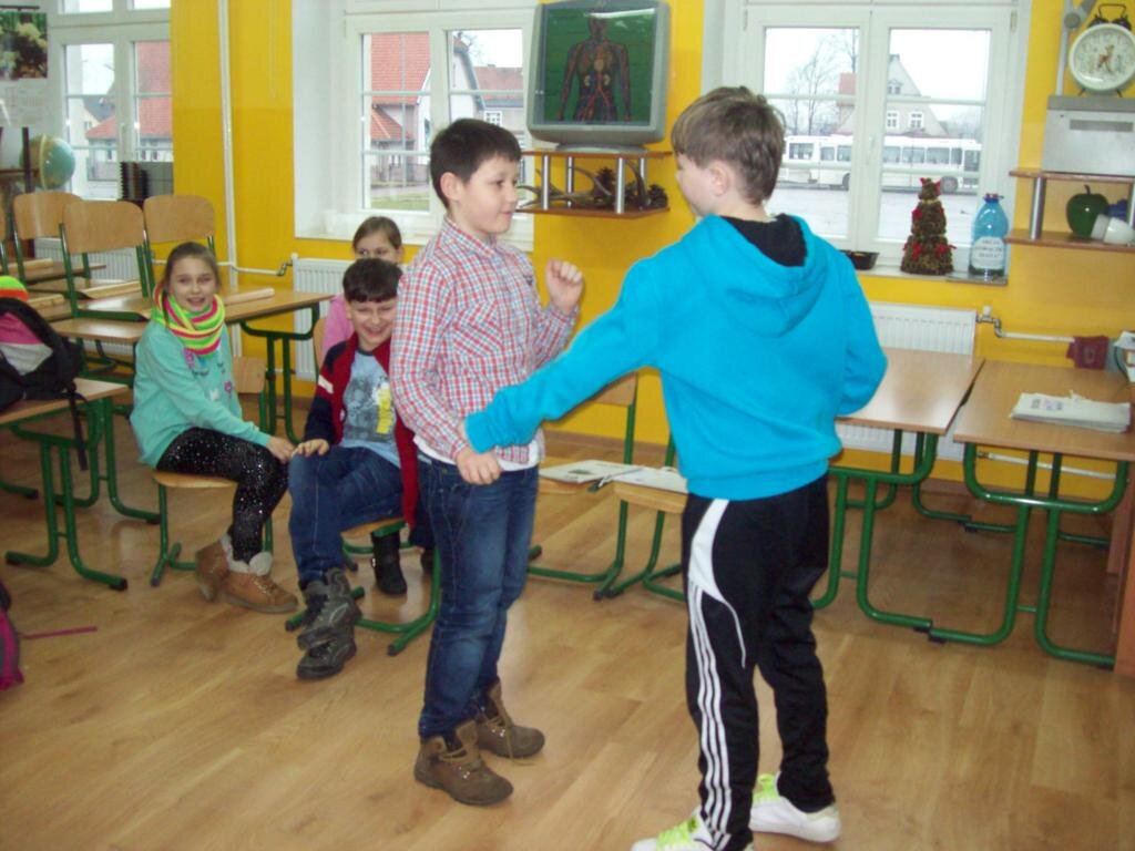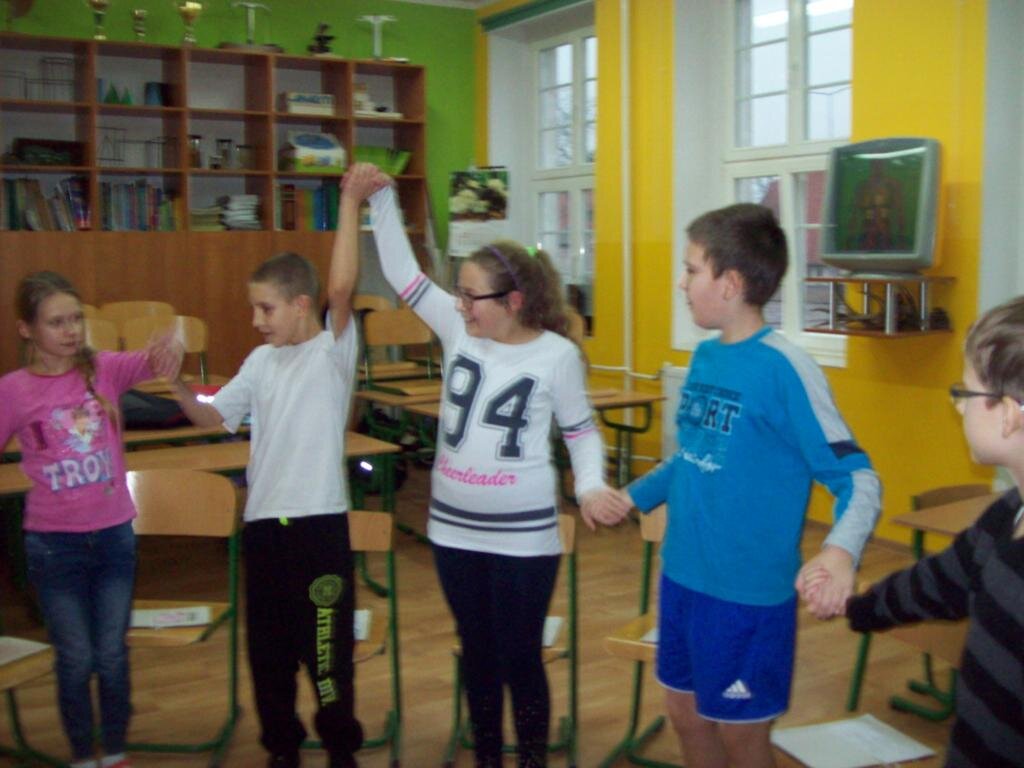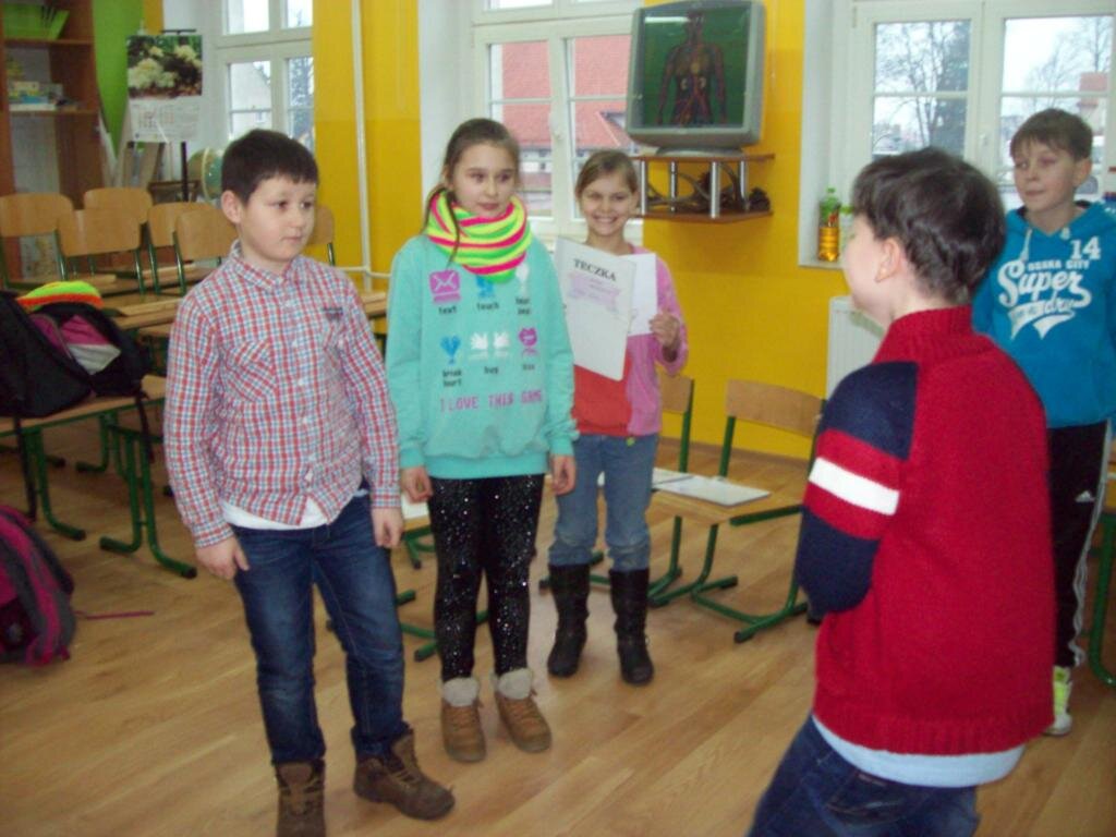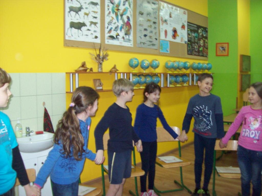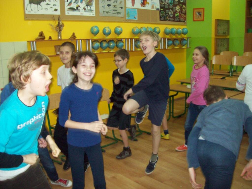 Dnia 8 stycznia 2014r. rozpoczęliśmy Moduł „Zarządzanie stanami”.  Podczas zajęć uczyliśmy się rozszyfrowywać emocje i uczucia u siebie i u innych. Bawiliśmy się w „pomniki” prezentując różne uczucia i emocje poprzez charakterystyczne gesty, mimikę twarzy, postawę ciała i próbowaliśmy je nawzajem odgadywać. Zabawę zakończyliśmy „marszem fabularnym”, czyli szliśmy radośni, szczęśliwi, następnie bardzo zmęczeni wspinaliśmy się na szczyt góry, a potem poruszaliśmy się pewnie, odważnie. Cała wyprawa zakończyła się herbatką u królowej. Przyszła kolej na „WTAJEMNICZENIE 1”. Polegało ono na rozszyfrowaniu jak czuje się dana osoba, co wyraża jej twarz, sylwetka. Wszyscy potrafili wykonać to zadanie i otrzymali kolejny atrybut Mistrza EN – ponton, który umożliwi nam pokonanie kolejnej przeszkody na mapie, którą jest rzeka.
