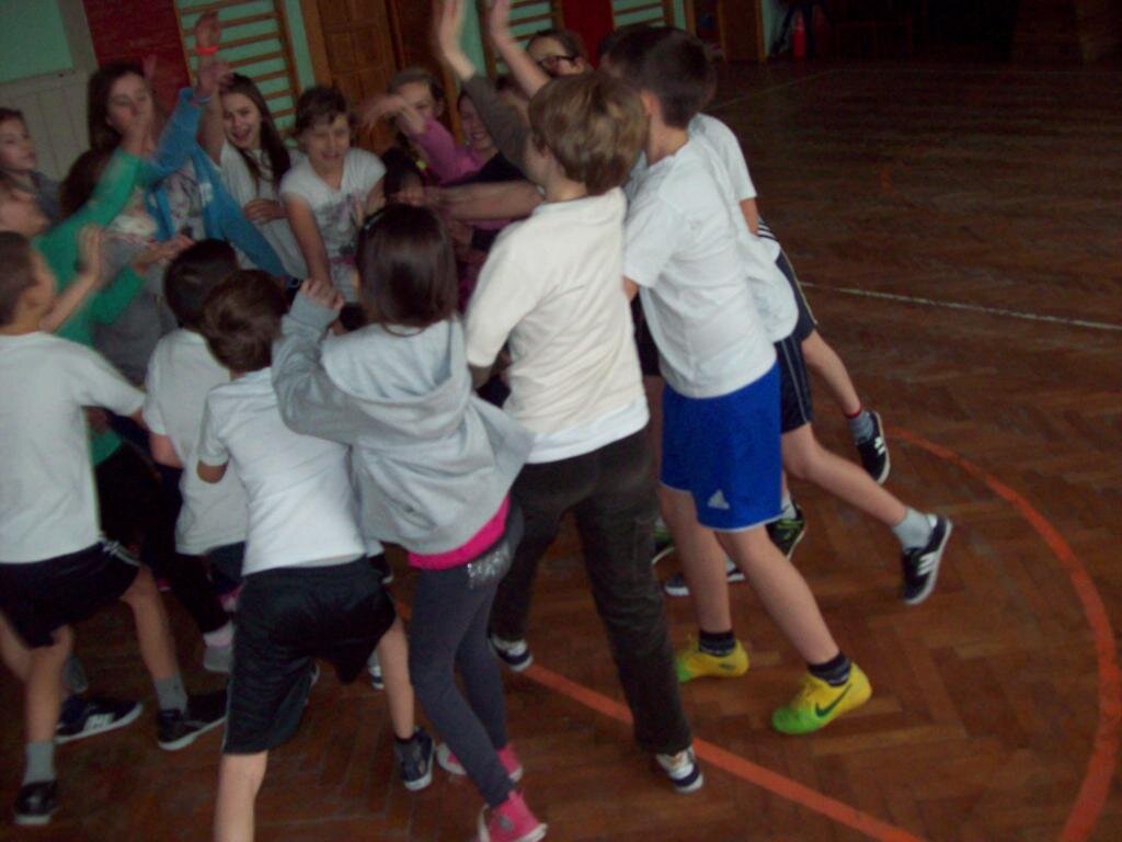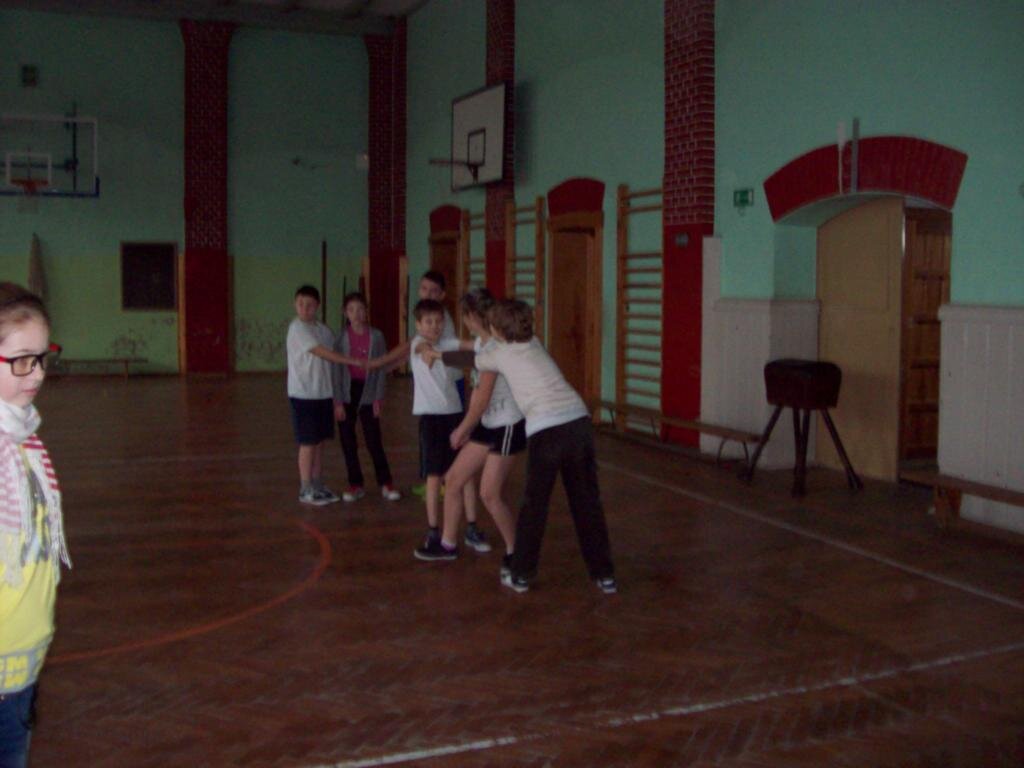 Spróbowaliśmy zarządzać naszą energią udając, że biegamy radośnie po łące, podbijamy piłkę, idziemy bardzo wolno z ciężkim plecakiem i bawiąc się w „pajacyki”. Pompowaliśmy dłońmi, przeciągaliśmy się jak lwy głośno rycząc, wirowaliśmy barkami. Bawiliśmy się w „grzanki” i „pralkę automatyczną”. Dzięki temu poznaliśmy główną zasadę „ładowania energii”, którą jest ENERGICZNY, SZYBKI RUCH.