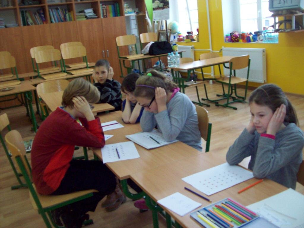 - muszelki na uszach i liczymy co 2 od 100