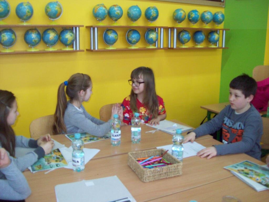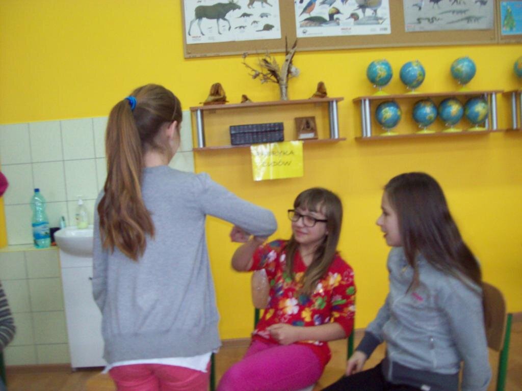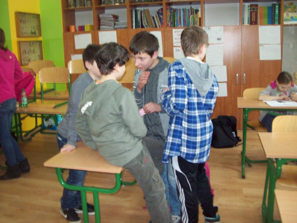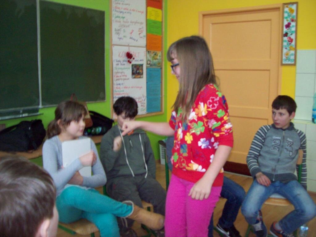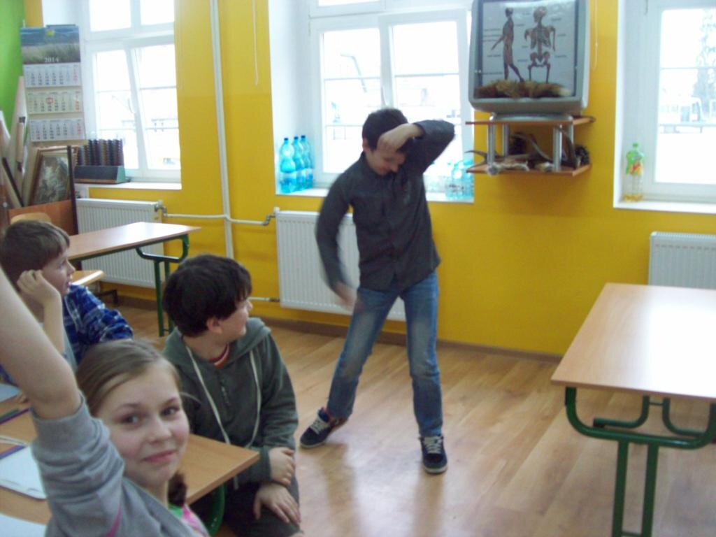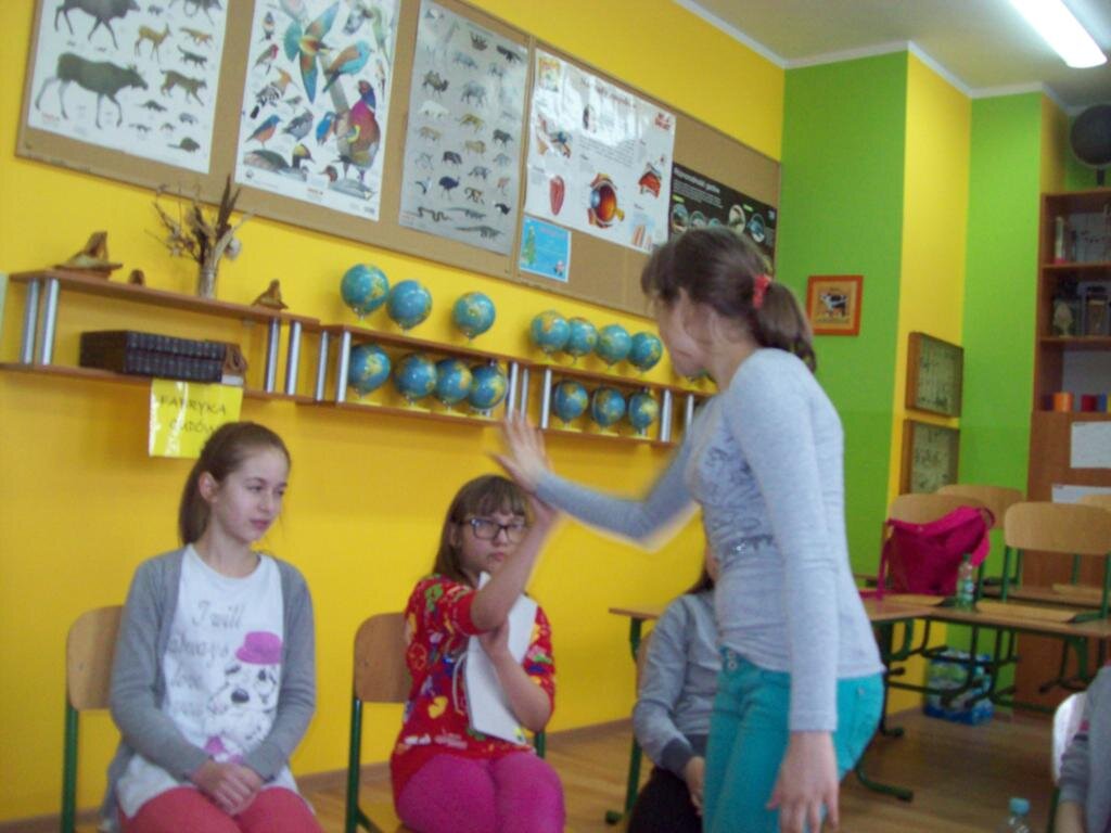 Uczniowie podczas zajęć wcielili się w rolę tzw. przeszkadzaczy czyli hałasu, bałaganu, dzwonka telefonu, telewizora, zwierzęcia, siostry czy brata. Wybrani uczniowie próbowali znaleźć sposób na te stwory i mimo zamętu zapamiętać jak najwięcej zadanych do nauczenia słów. Nie było łatwo – na 9 słów zapamiętali 5-6. Musieliśmy więc wymyśleć swoje sposoby na przeszkadzacze np. wyproszenie intruza z pokoju, prośba o wyłączenie telewizora, ściszenie muzyki, a nawet krzyknięcie, wypchnięcie itp.
