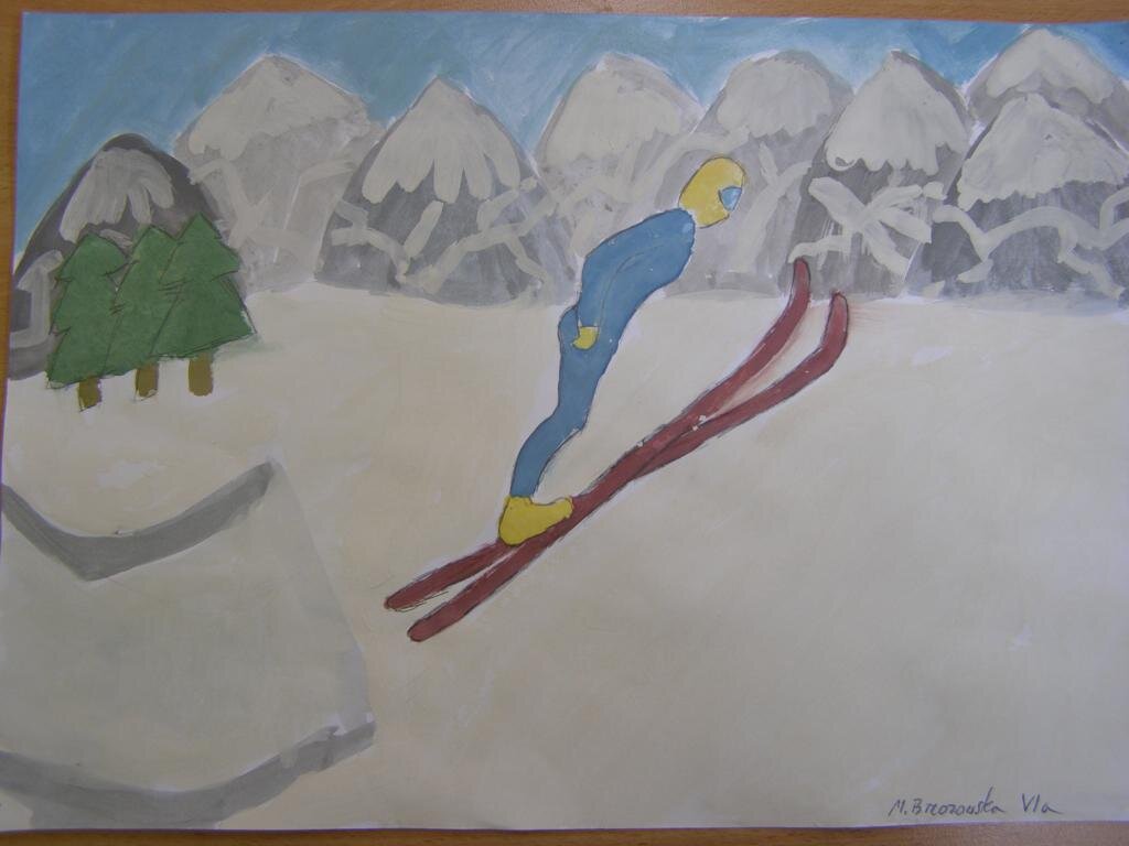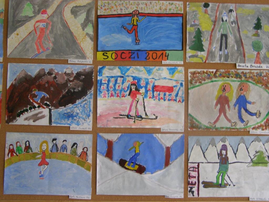 Prace wykonali uczniowie klas IV-VI. Piękne sylwetki sportowców uchwycone w ruchu to zadanie dość trudne, ale wykonane na piątki z plusem