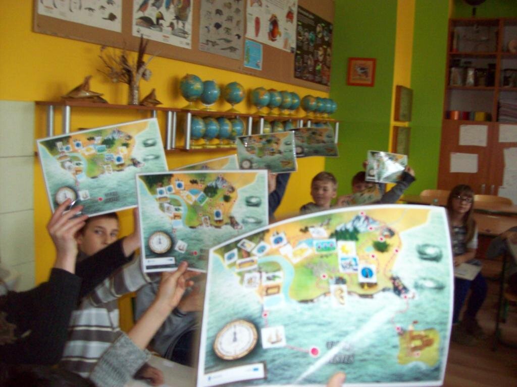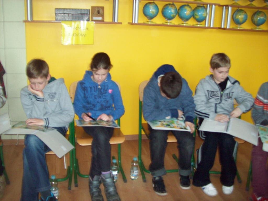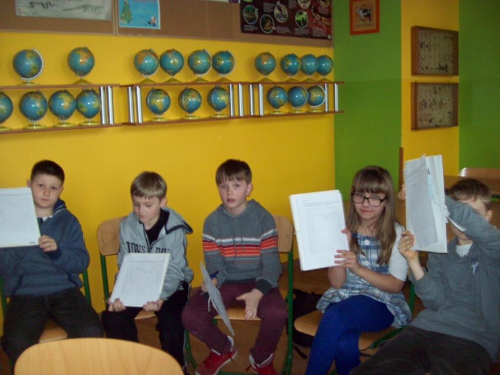 W swojej wędrówce dotarliśmy do skalnej groty, w której słychać nawet drobniutki szelest, kroplę wody. Nauczyliśmy się koncentrować w ciszy poprzez tzw. „muszelki” i „masowanie uszu” oraz sprawdziliśmy które z naszych uszu jest dominujące. Napisaliśmy też Symetryczne Dyktando Graficzne. Bawiliśmy się w zagadki ze słuchu, wyłapywaliśmy informacje z czytanego tekstu i uzupełnialiśmy wierszowane treści.