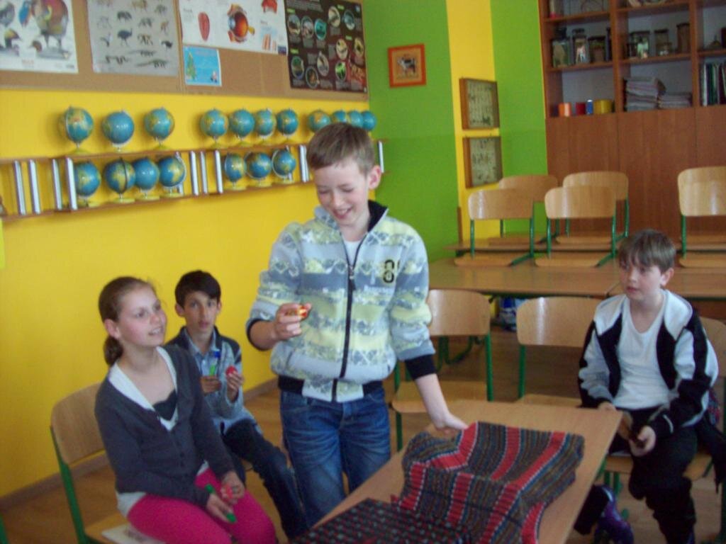 Najciekawszą zabawą naukową okazało się PUDEŁKO SENSORYCZNE, z którego sięgaliśmy przeróżne przedmioty i nie widząc ich musieliśmy powiedzieć co to było. Okazało się, że jest to możliwe dzięki temu, że możemy rozpoznawać przedmioty „odpamiętując” je dotykiem.