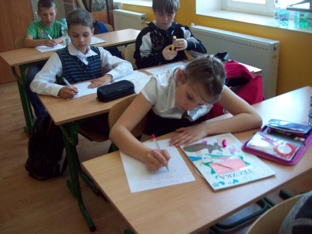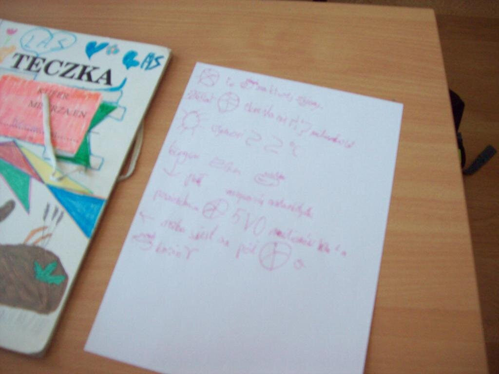 Zajęcia zapoczątkowała mini-drama, w której trzeba było odgrywać roślinę, która zostaje pozbawiona wody. Tak jak ona, my również czujemy się lepiej, kiedy działamy w otoczeniu, które lubimy. Poszukiwaliśmy też odpowiedzi na pytanie „W jaki sposób uczy nam się najlepiej?” Dowiedzieliśmy się jak pracują słuchowcy, jak wzrokowcy i jak kinestetycy. Zrobiliśmy z tego notatki wykorzystując skróty, symbole – powstały nasze własne mapy myśli. Próbowaliśmy znaleźć nasze własne style uczenia. Następnie trzeba było zanotować informacje o naszej planecie – pomysły były przeróżne.