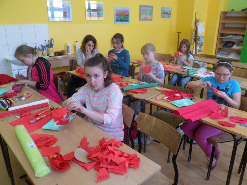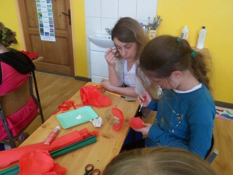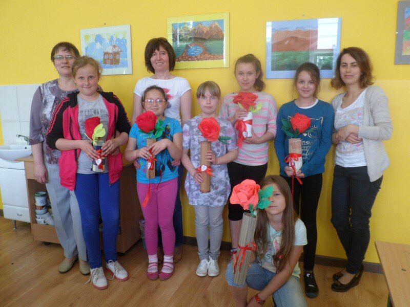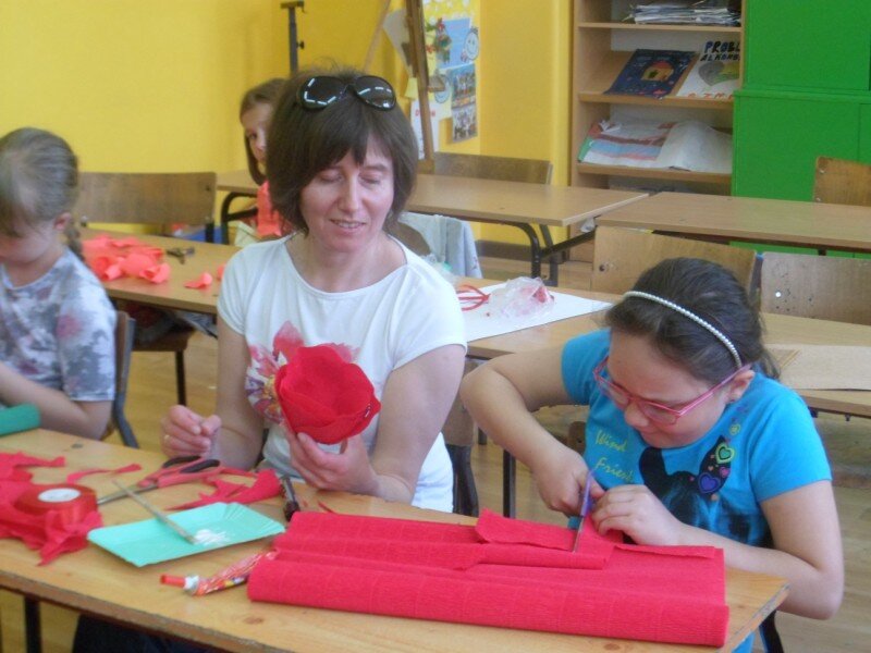 Dzień Matki uczciliśmy wspólnym wykonaniem róży z bibuły. Ten trudny kunszt wymagał pomocy rąk naszych kochanych mam. Wspólnymi siłami powstały piękne prace, a razem spędzony czas okazał się bezcenny dla pogłębienia relacji rodzinnych.