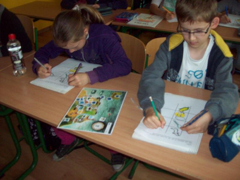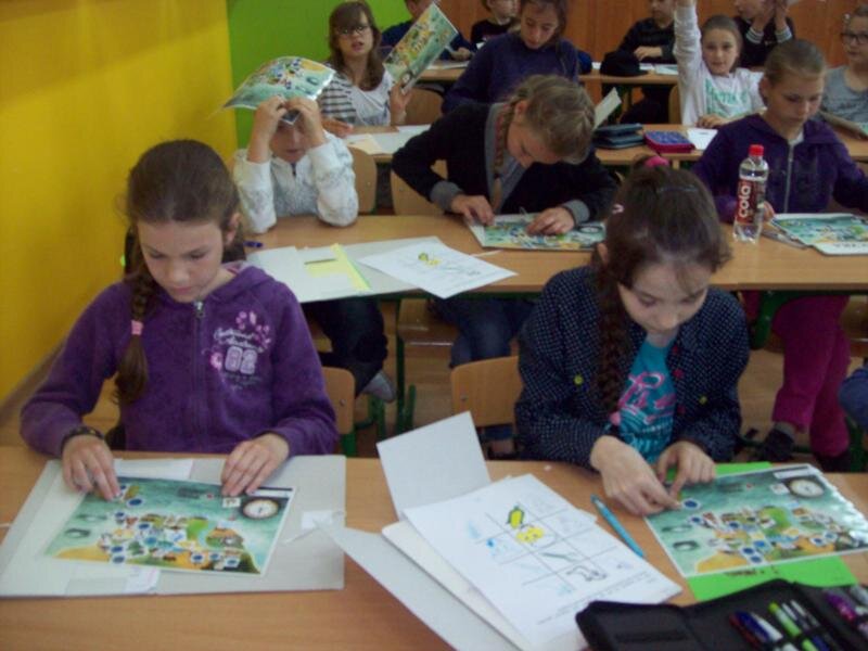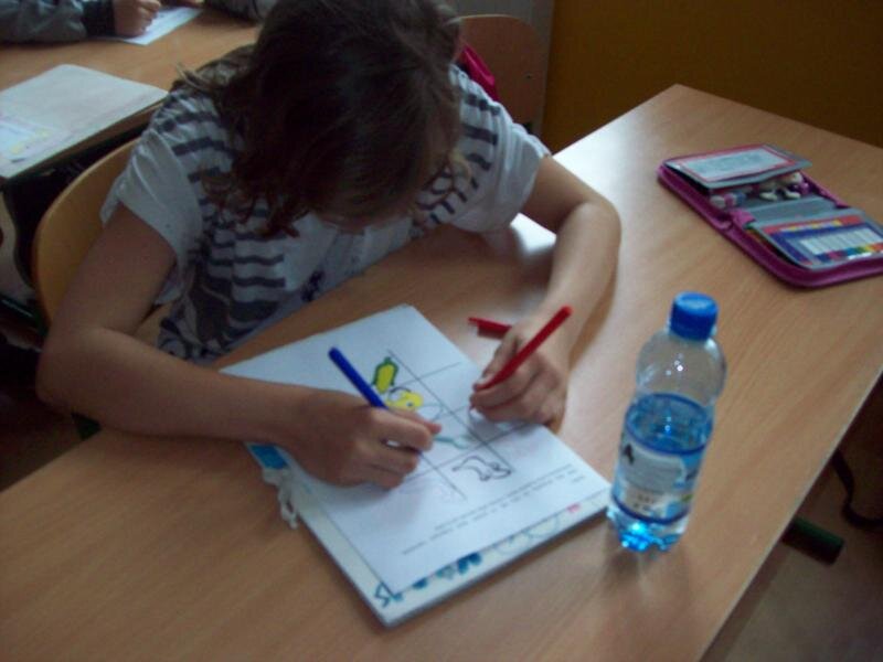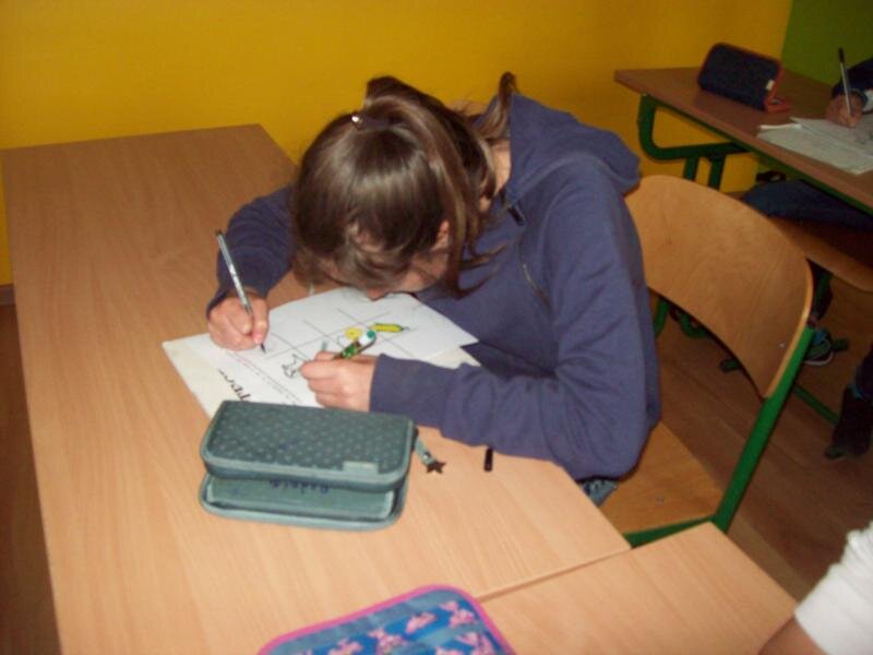 Zaczęliśmy od rozgrzewki, która polegała na rysowaniu oburącz, a następnie uczestniczyliśmy w Smoczym Quizie odpowiadając na przeróżne pytania. W nagrodę za prawidłowe odpowiedzi otrzymaliśmy wizerunki smoka, które zostaną umieszczone na naszych herbach.