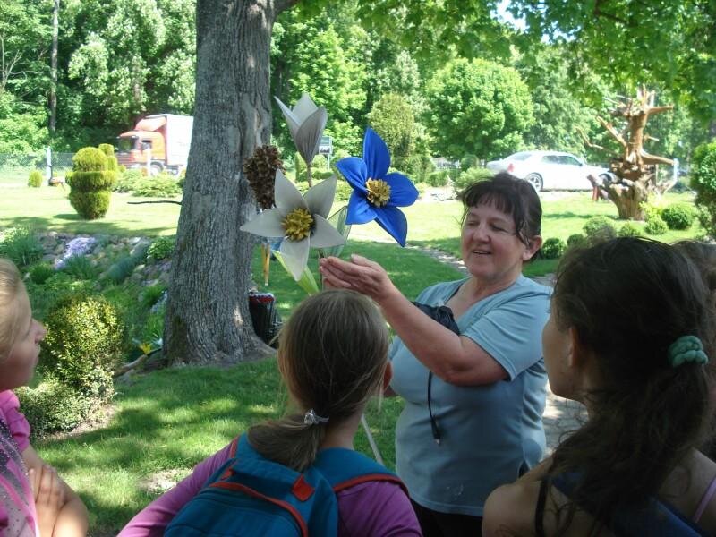 O inspiracjach i pomysłowej technice swoich prac pani Danusia opowiedziała uczniom w swoim malutkim warsztacie mieszczącym się w garażu nieopodal ogrodu.