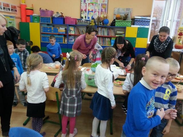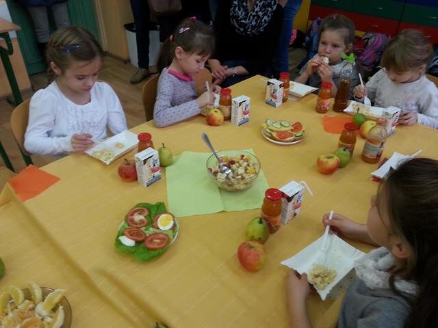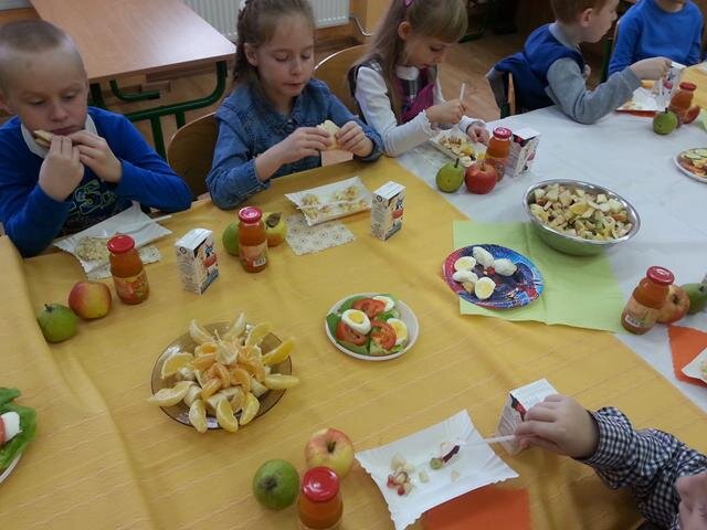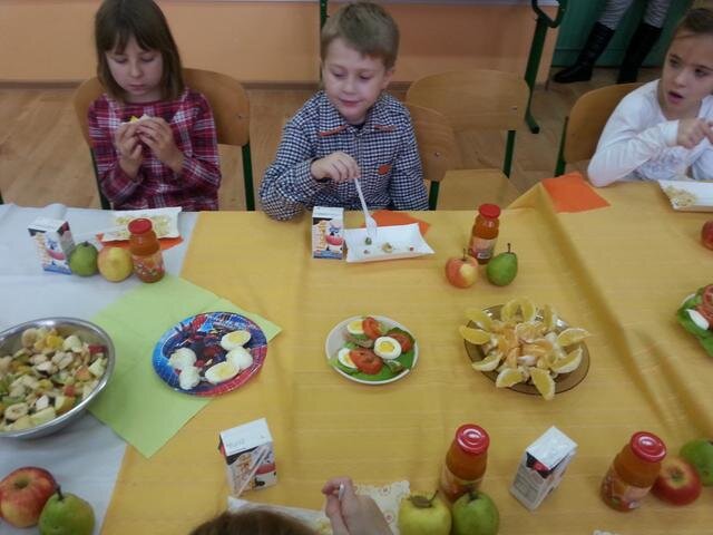 Nam w przygotowaniu śniadania pomagali rodzice. Kolorowe kanapki i surówki były pyszne!