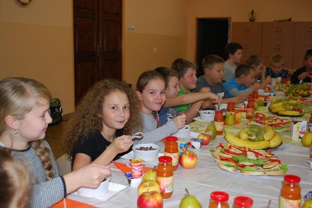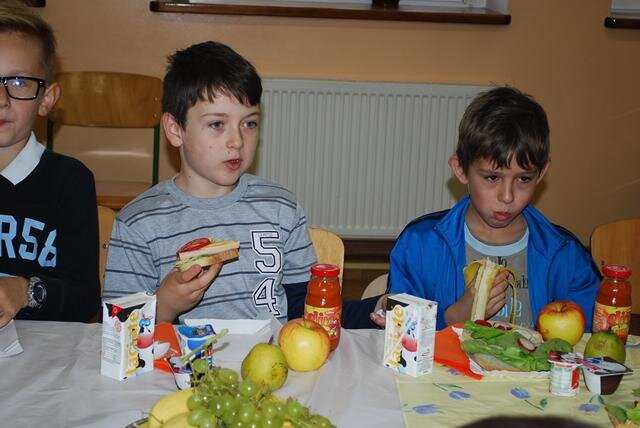 9 XI 2015r. uczniowie kl. III b (wych. D. Ciuruś) wzięli aktywny udział w ogólnopolskiej akcji ,,Śniadanie daje moc’’. W akcję zaangażowali się rodzice uczniów. Uczniowie zjedli pyszne, kolorowe śniadanie. Podczas rozmów dzieci udowodniły, iż śniadanie to najważniejszy posiłek dnia i dzięki niemu mają energię do nauki i zabawy.