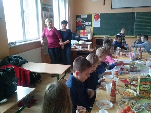 W dniu 6 XI 2015 r. uczniowie klasy III d (wych. M. Wiktorowicz) już po raz trzeci wzięli udział w ogólnopolskiej akcji pod hasłem: „Śniadanie daje moc”. Każde dziecko w domu wraz z rodzicami przygotowało zdrowy i smaczny posiłek, który przynieśli do klasy. Zaangażowani rodzice wspólnie z dziećmi udekorowali stół. Kolorowo nakryty stół towarzystwo koleżanek i kolegów sprawiły, że każdemu dopisywał apetyt. Podczas rozmów przy stole, dzieci udowodniły, że doskonale wiedzą, iż śniadanie to najważniejszy posiłek dnia i dzięki niemu mają energię do nauki, zabawy, lepiej koncentrują się podczas lekcji.